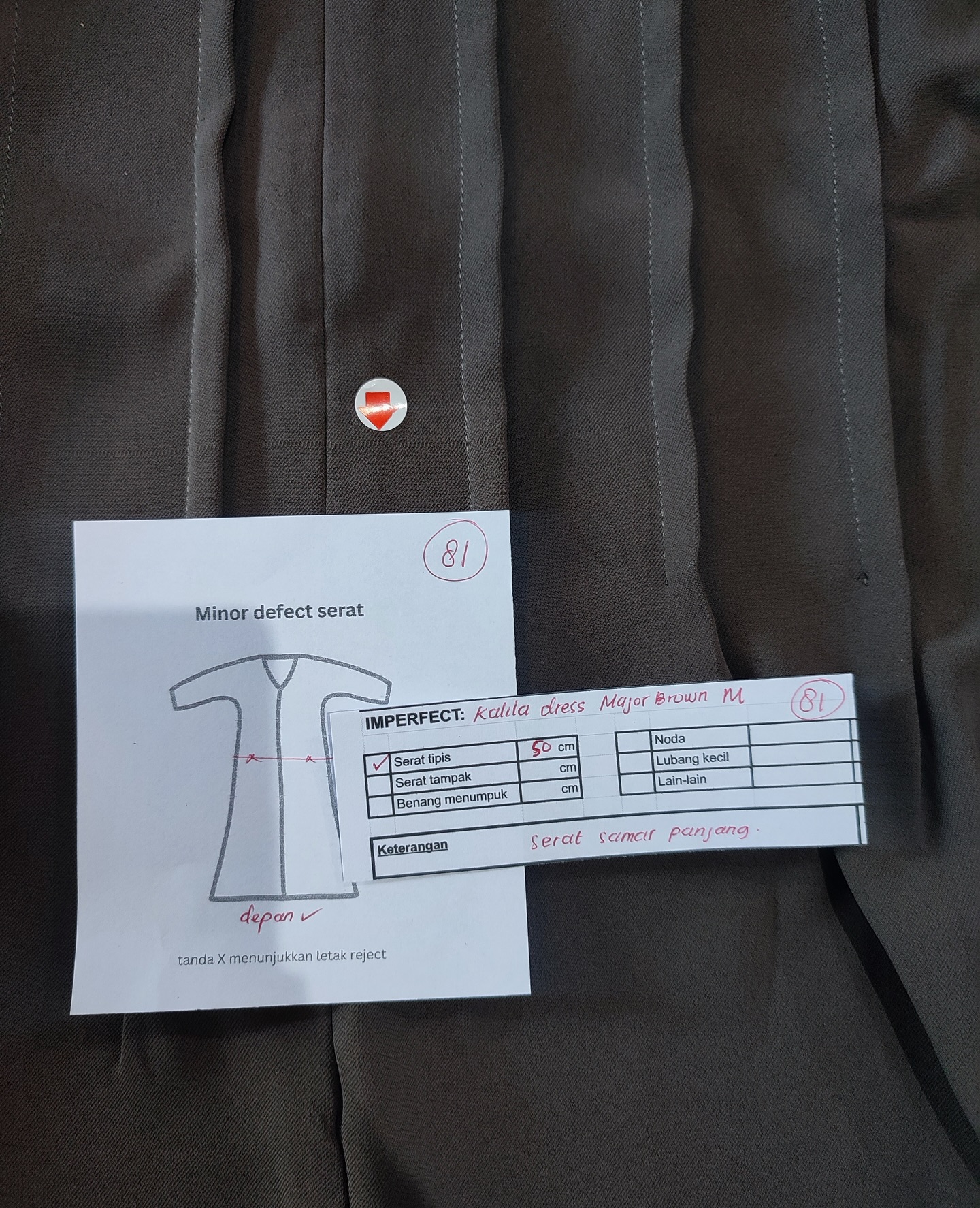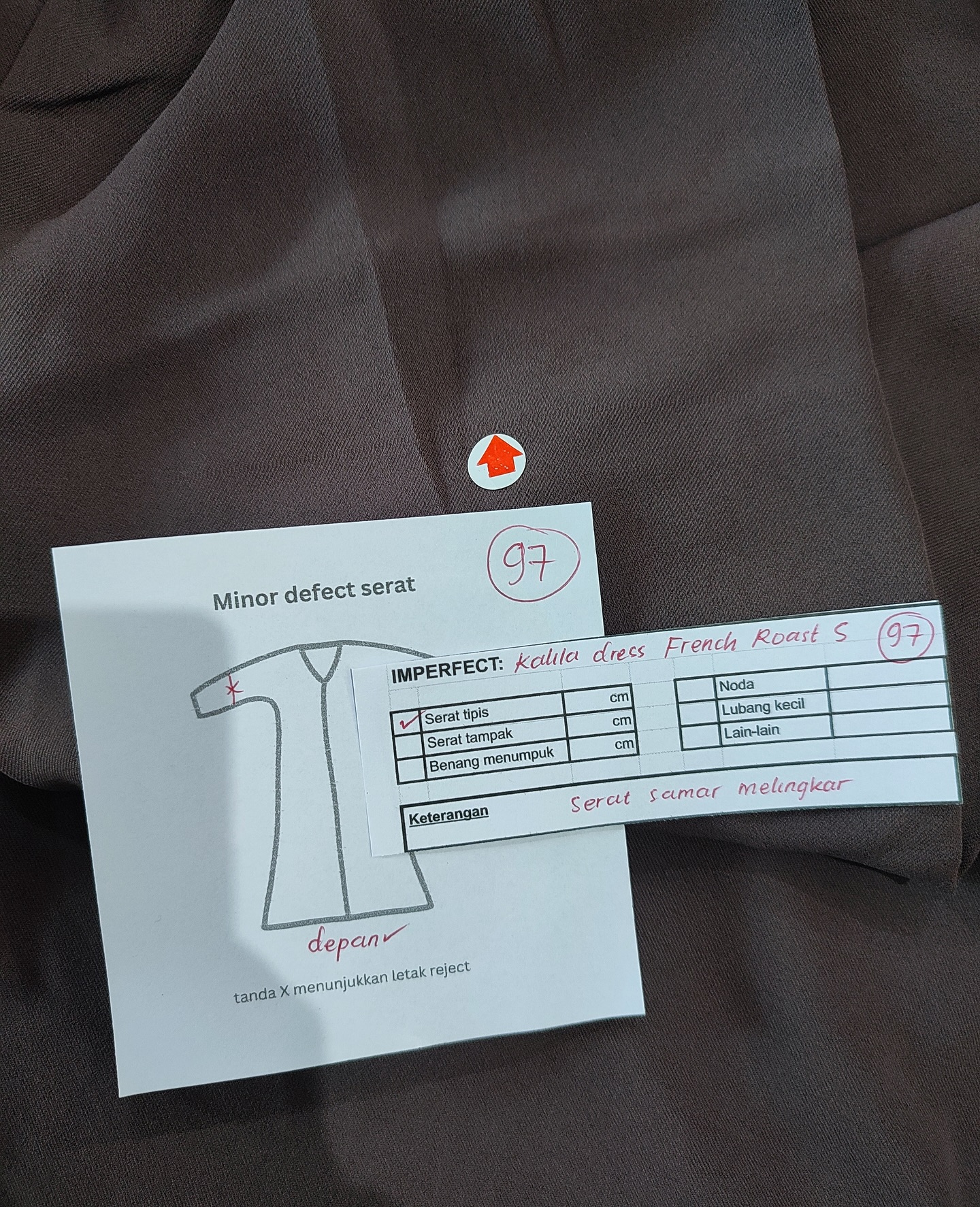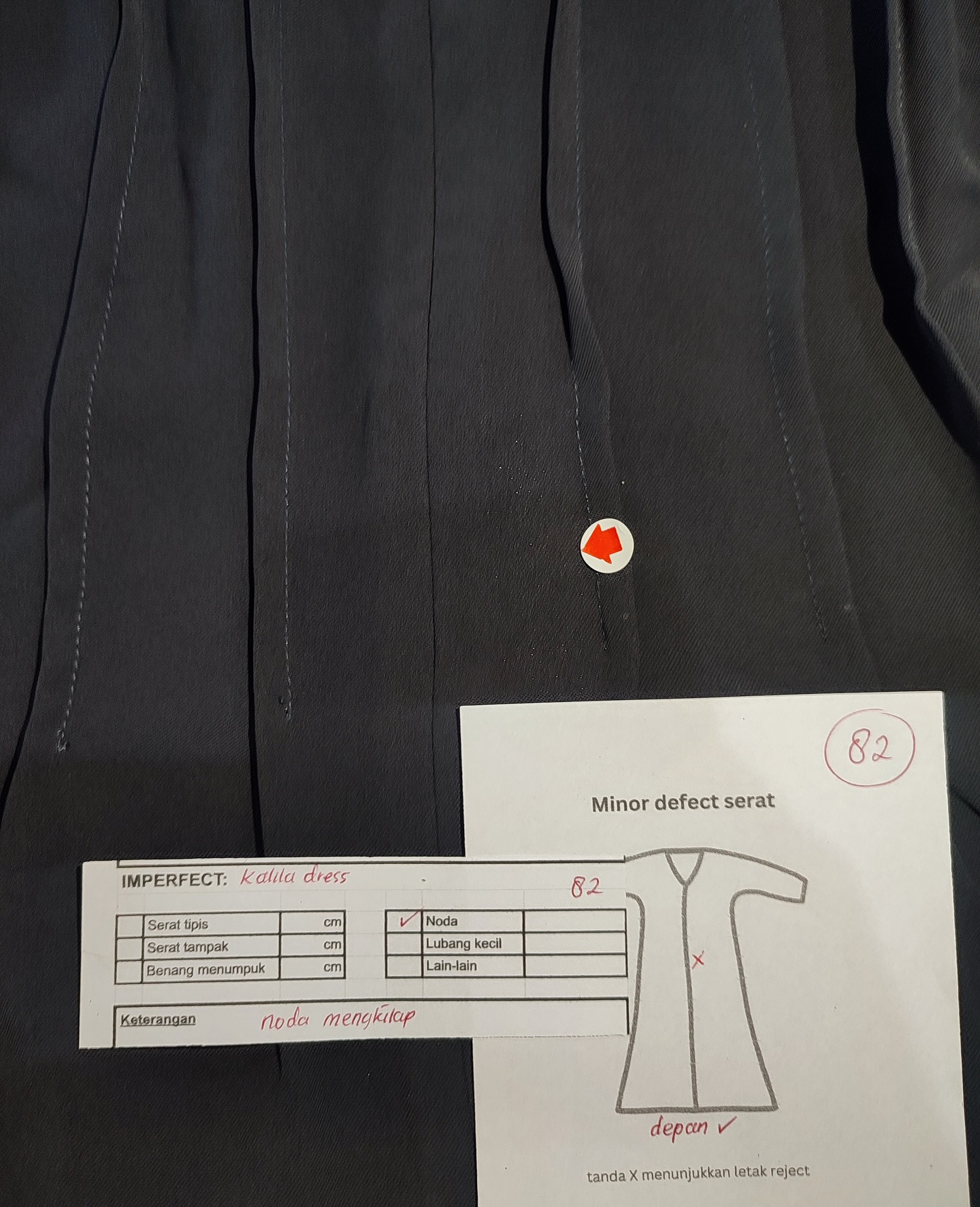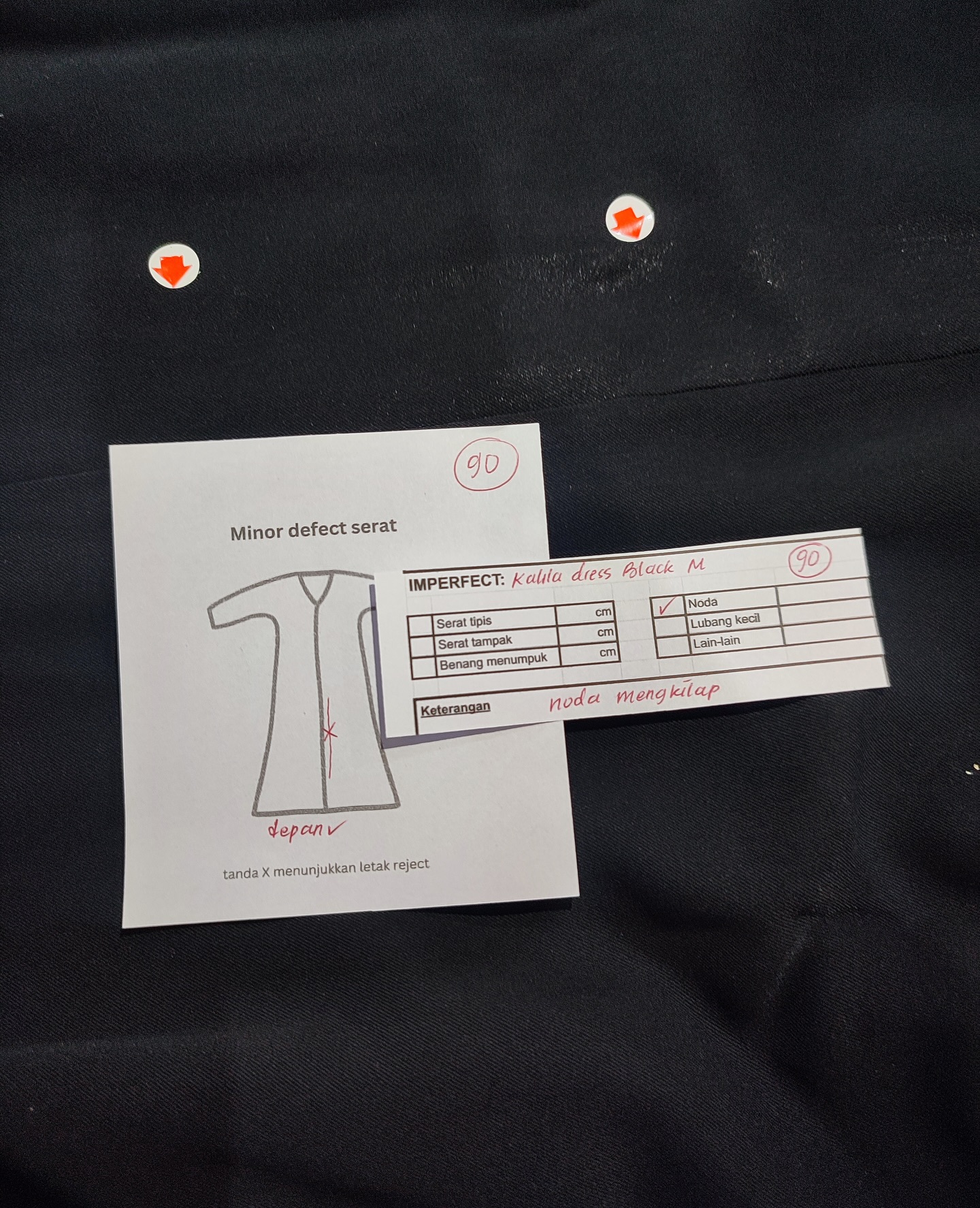 photo includes code, color, size, and defect details.