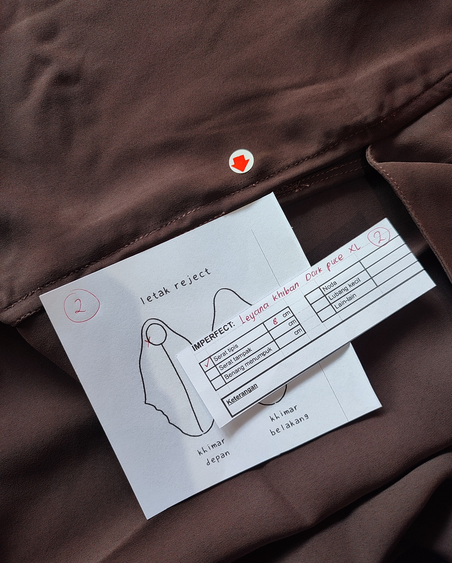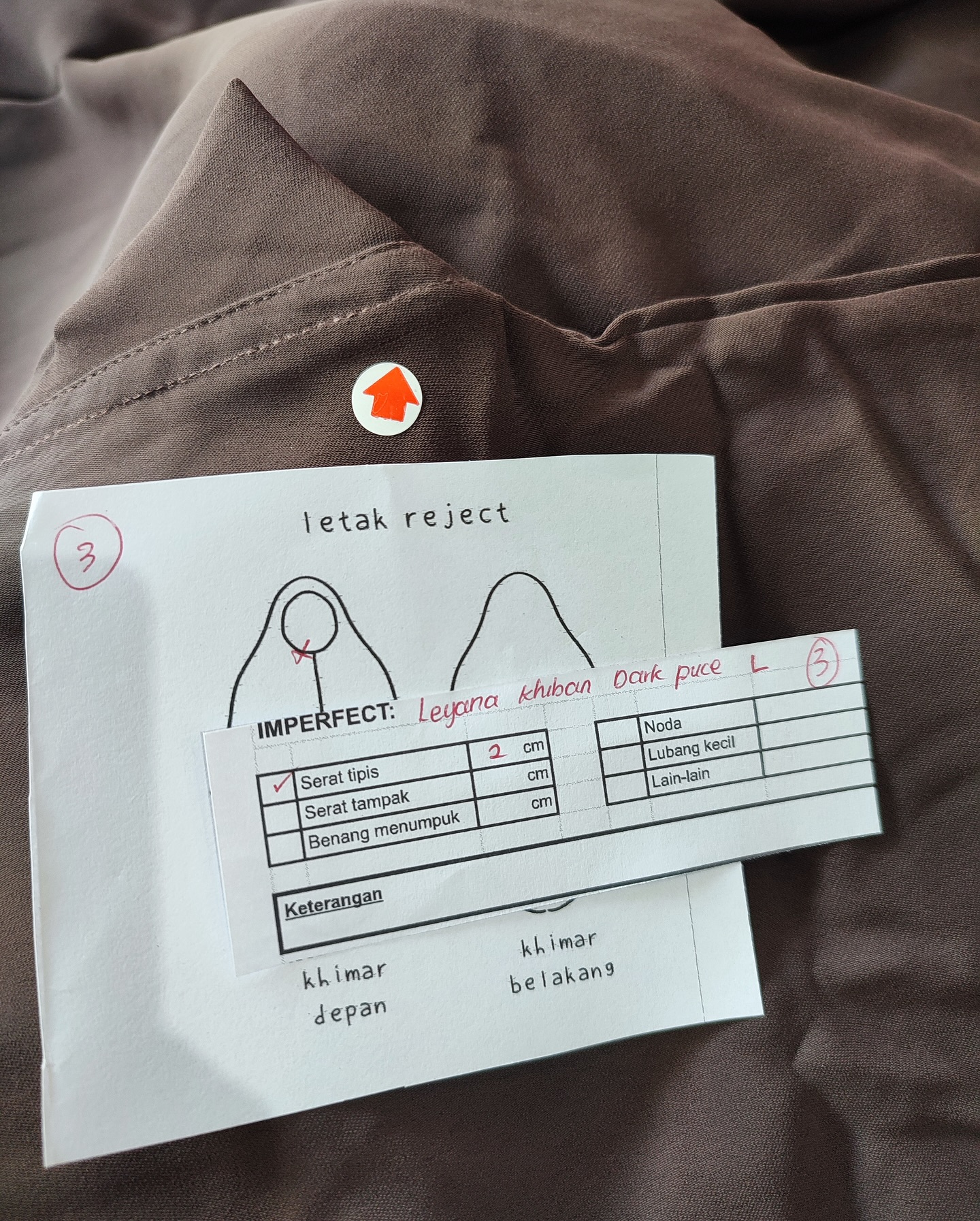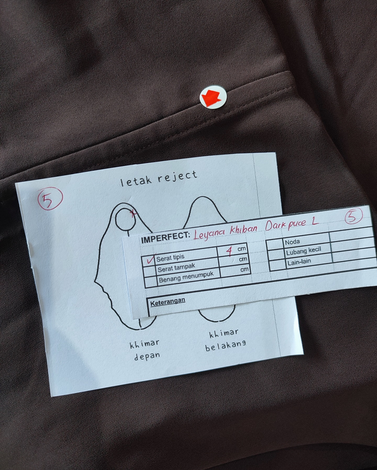 photo includes code, color, size, and defect details.