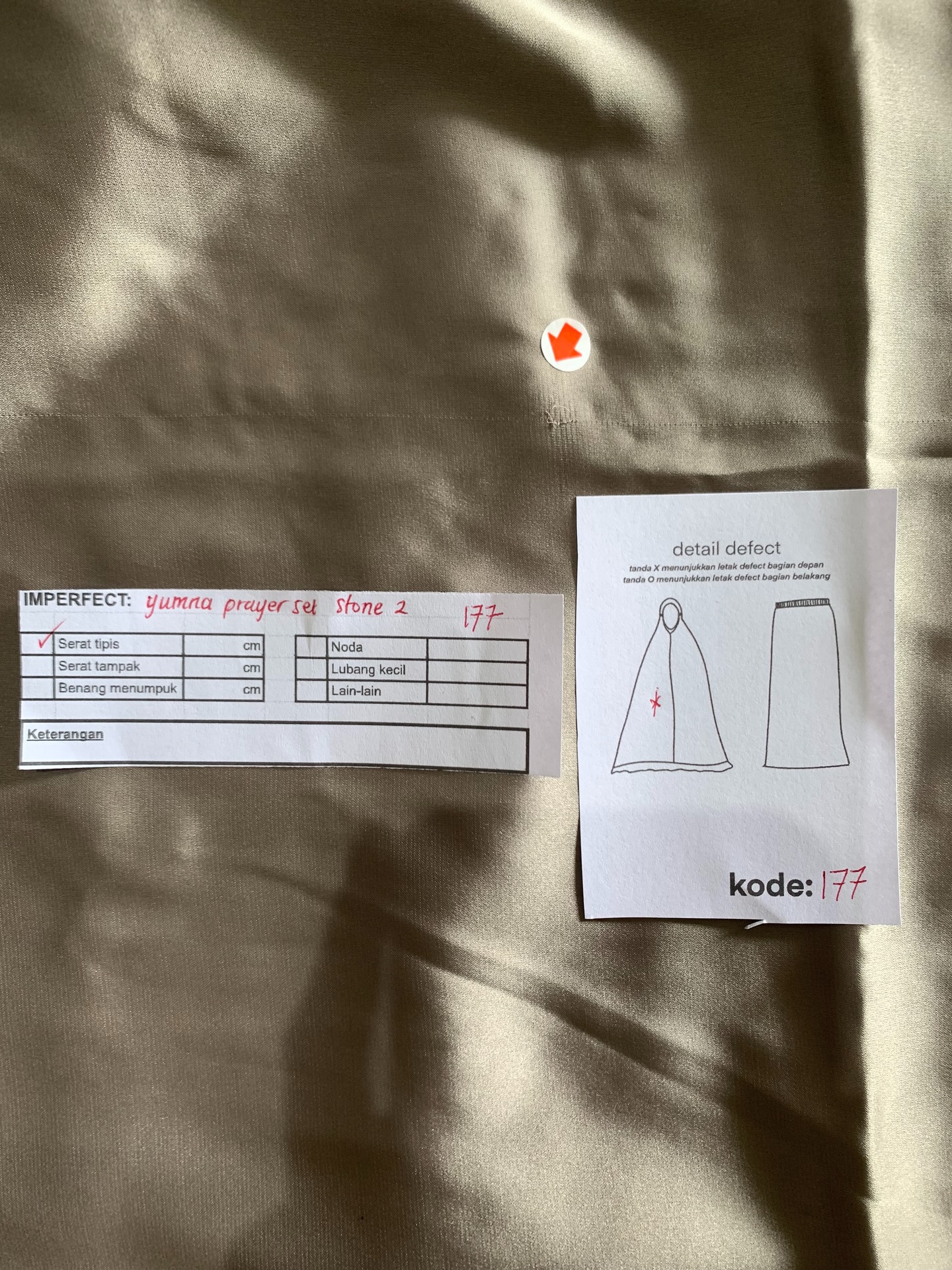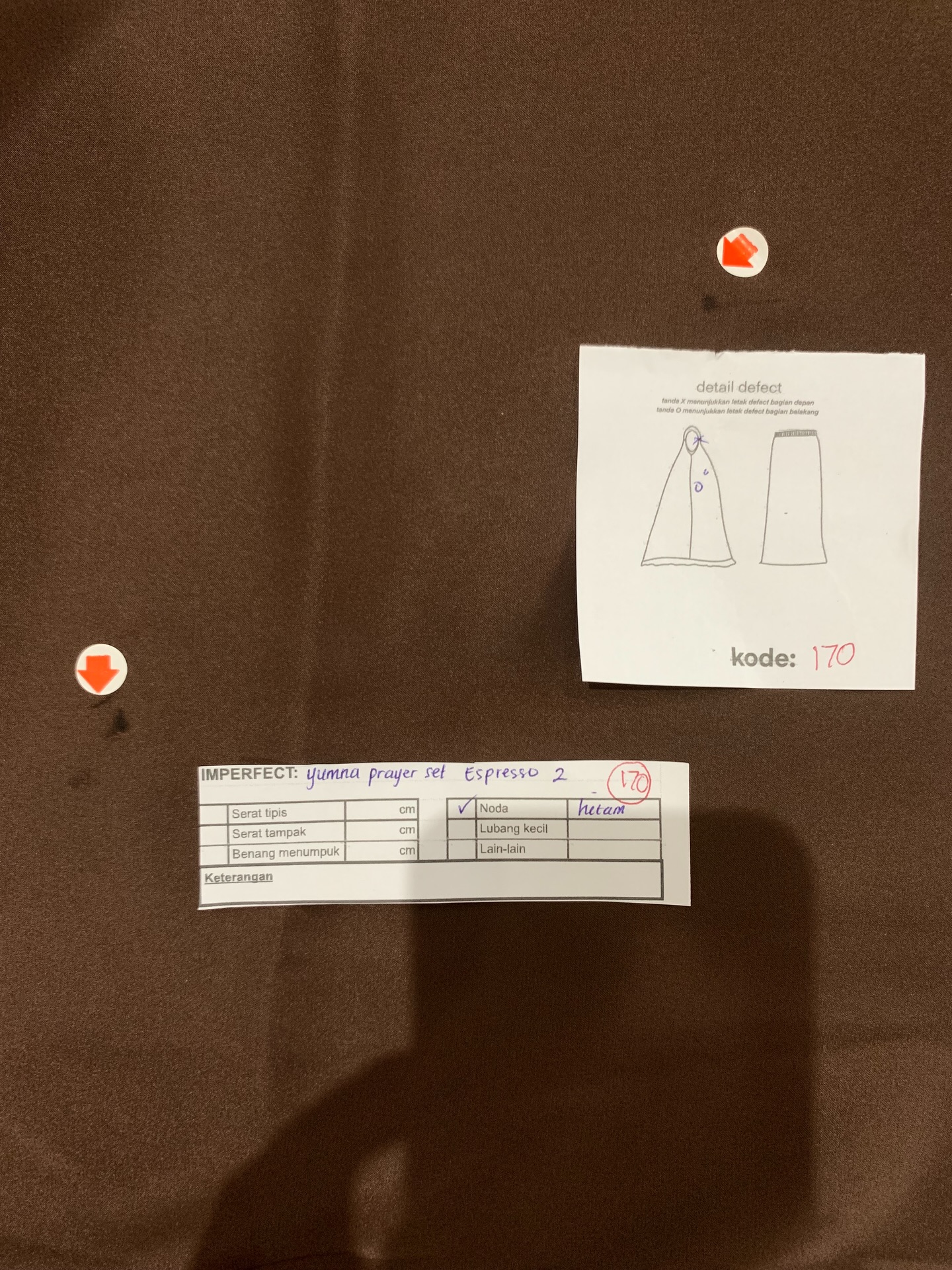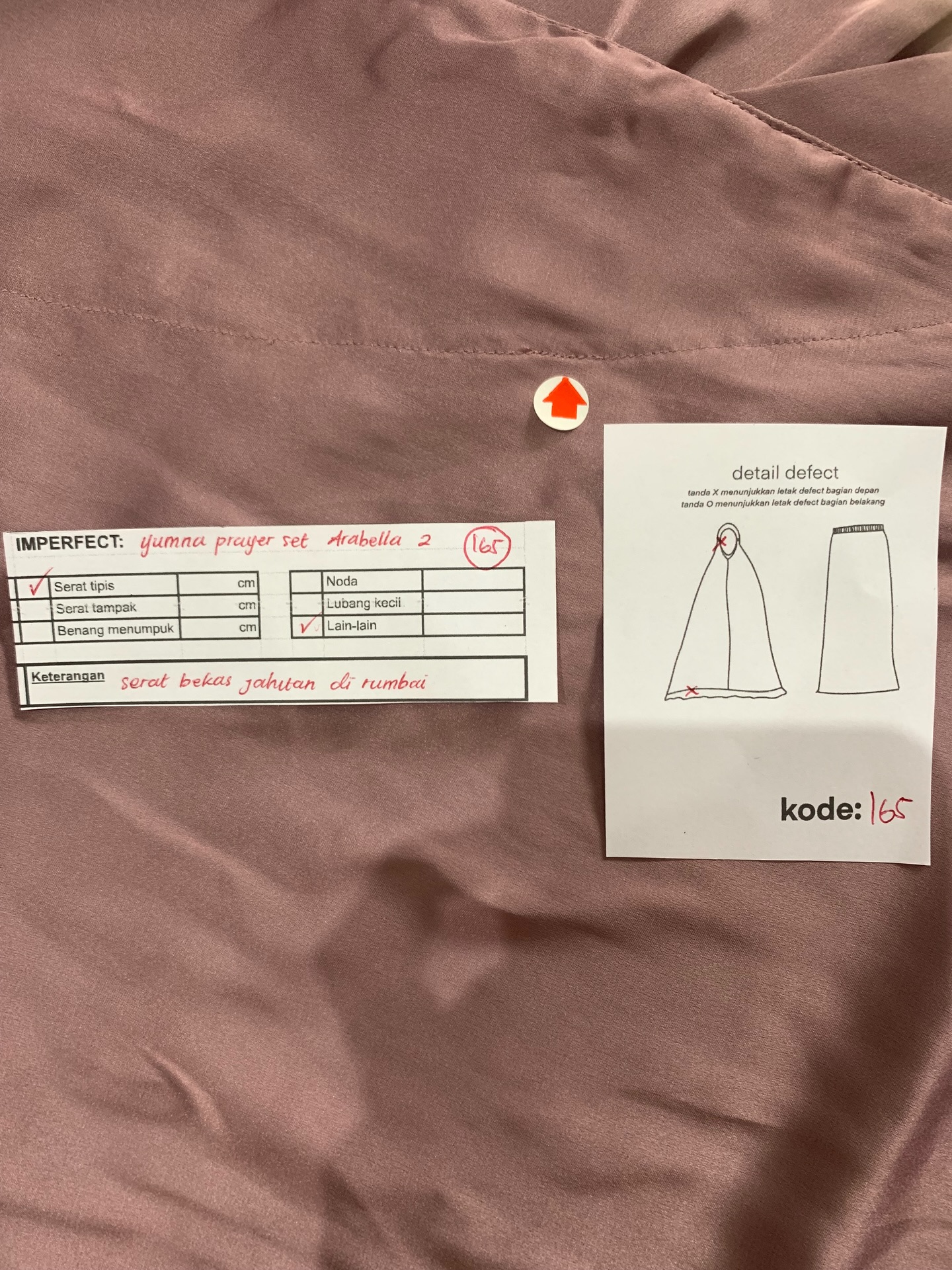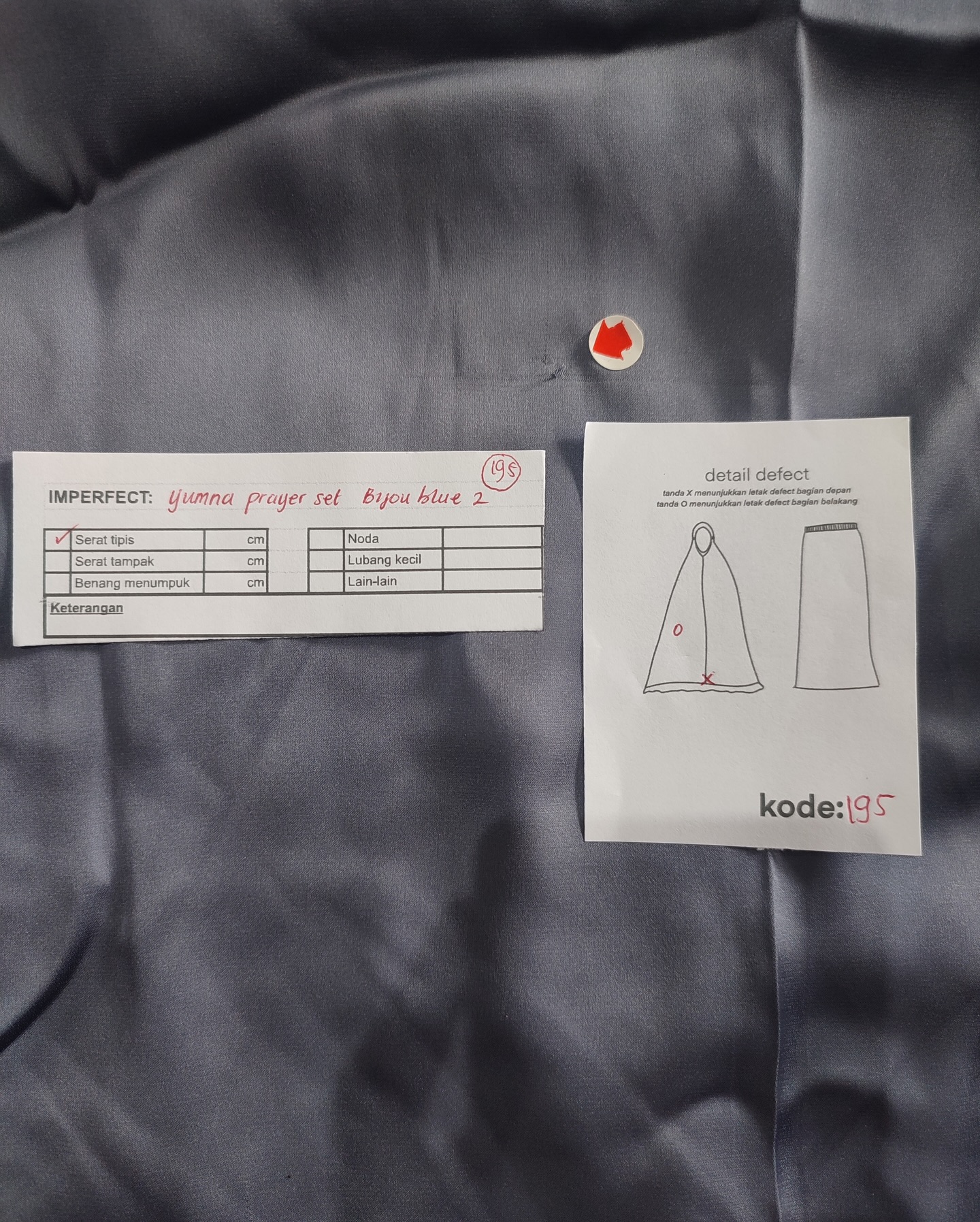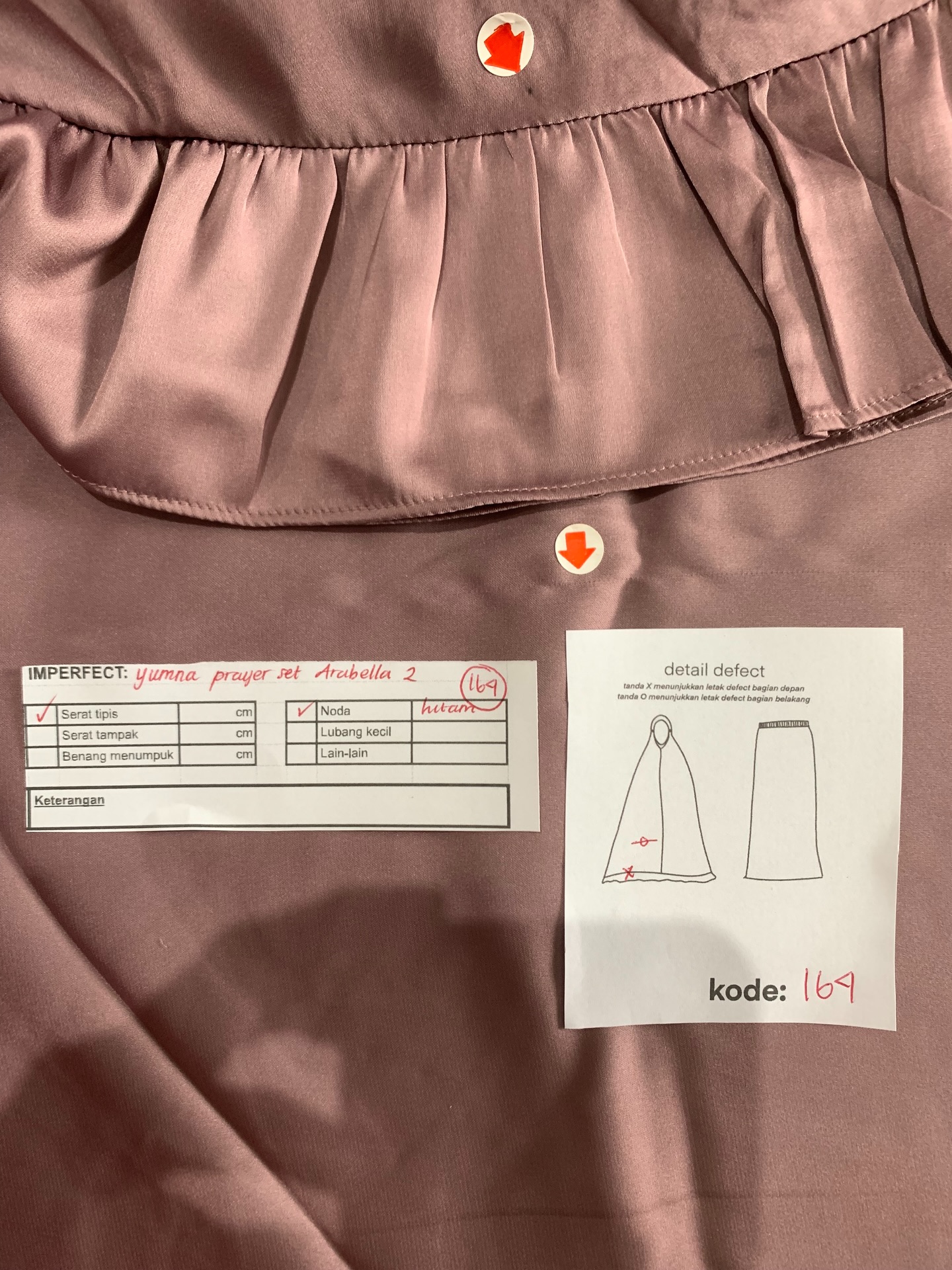 photo includes code, color, size, and defect details.