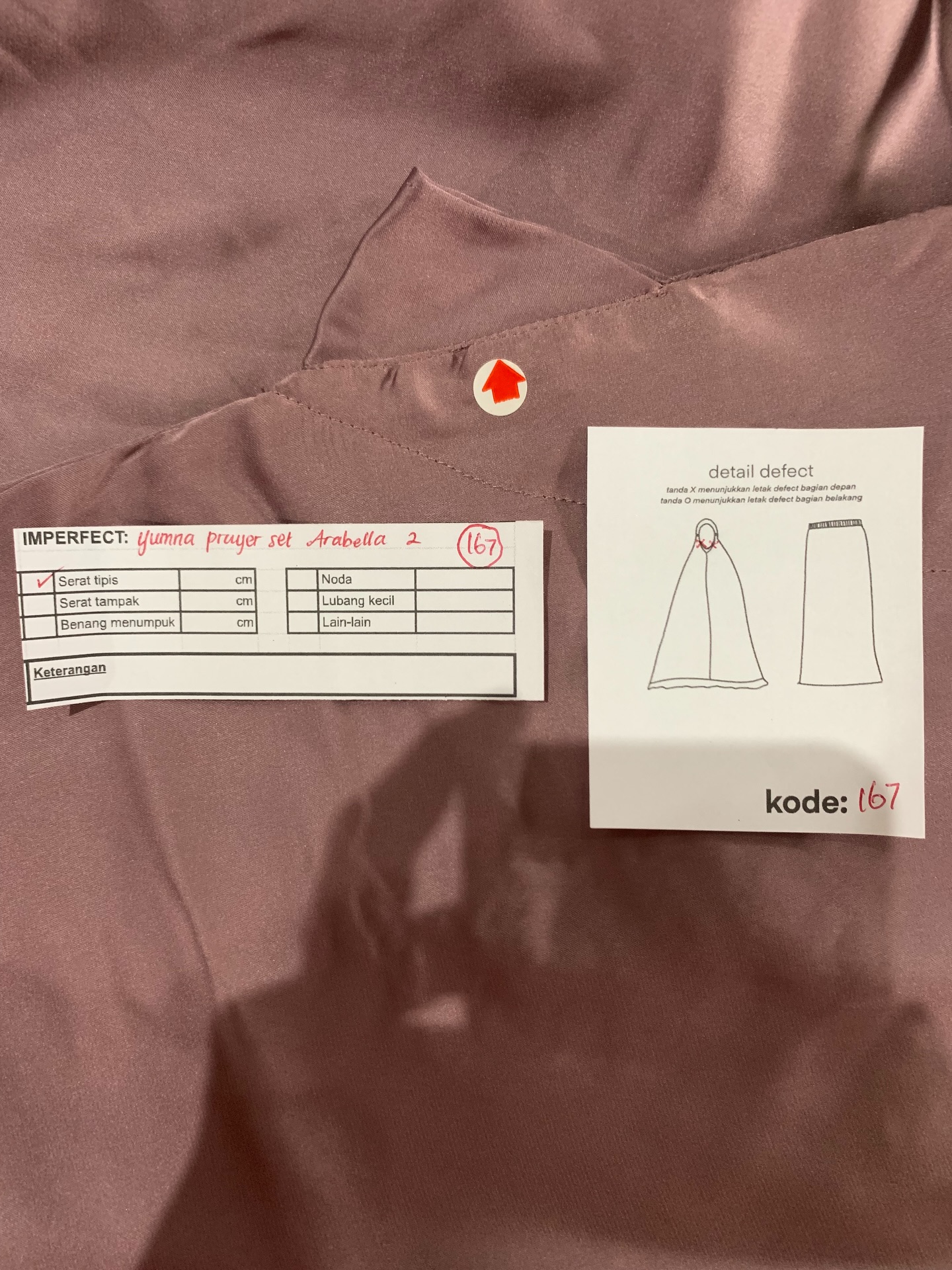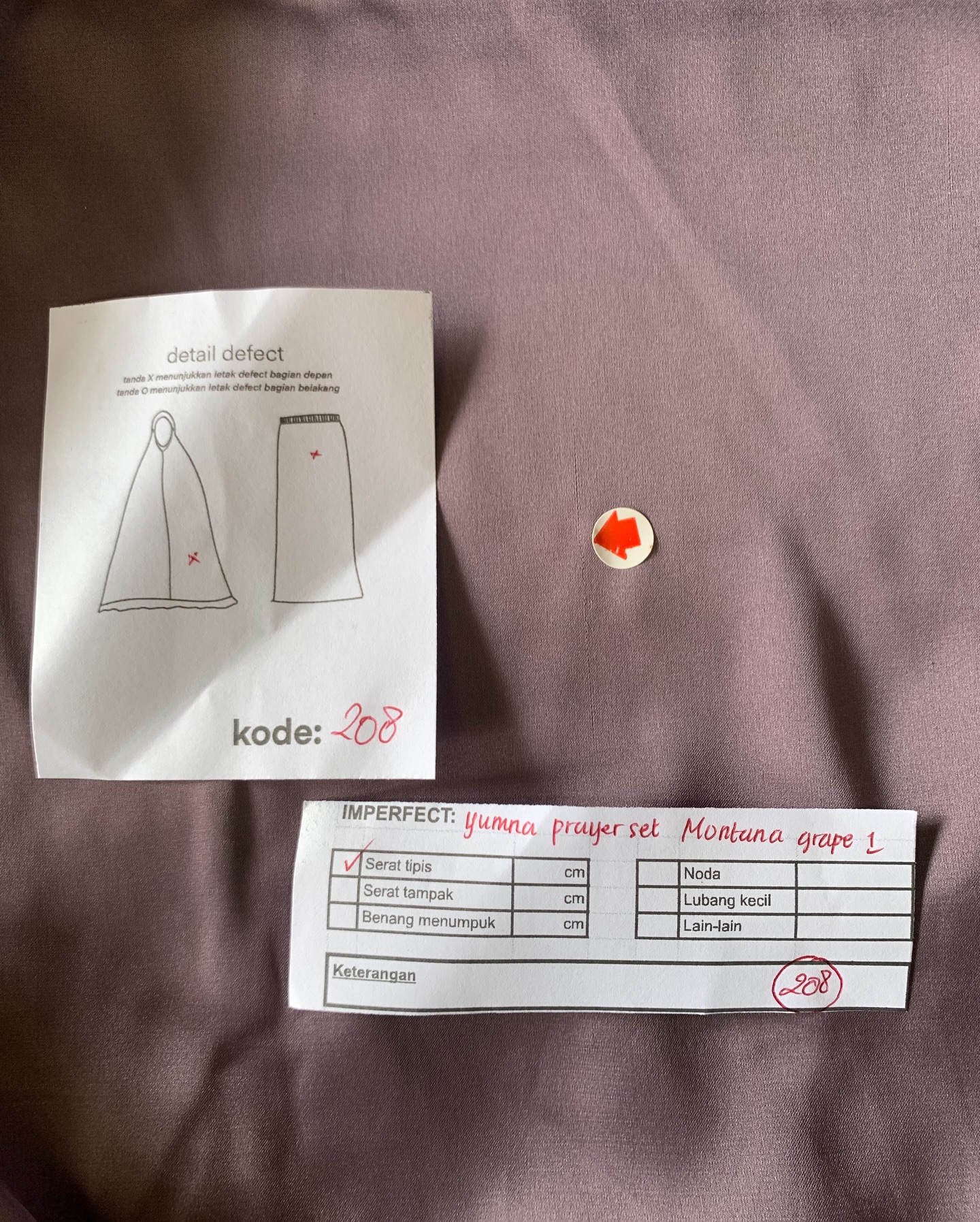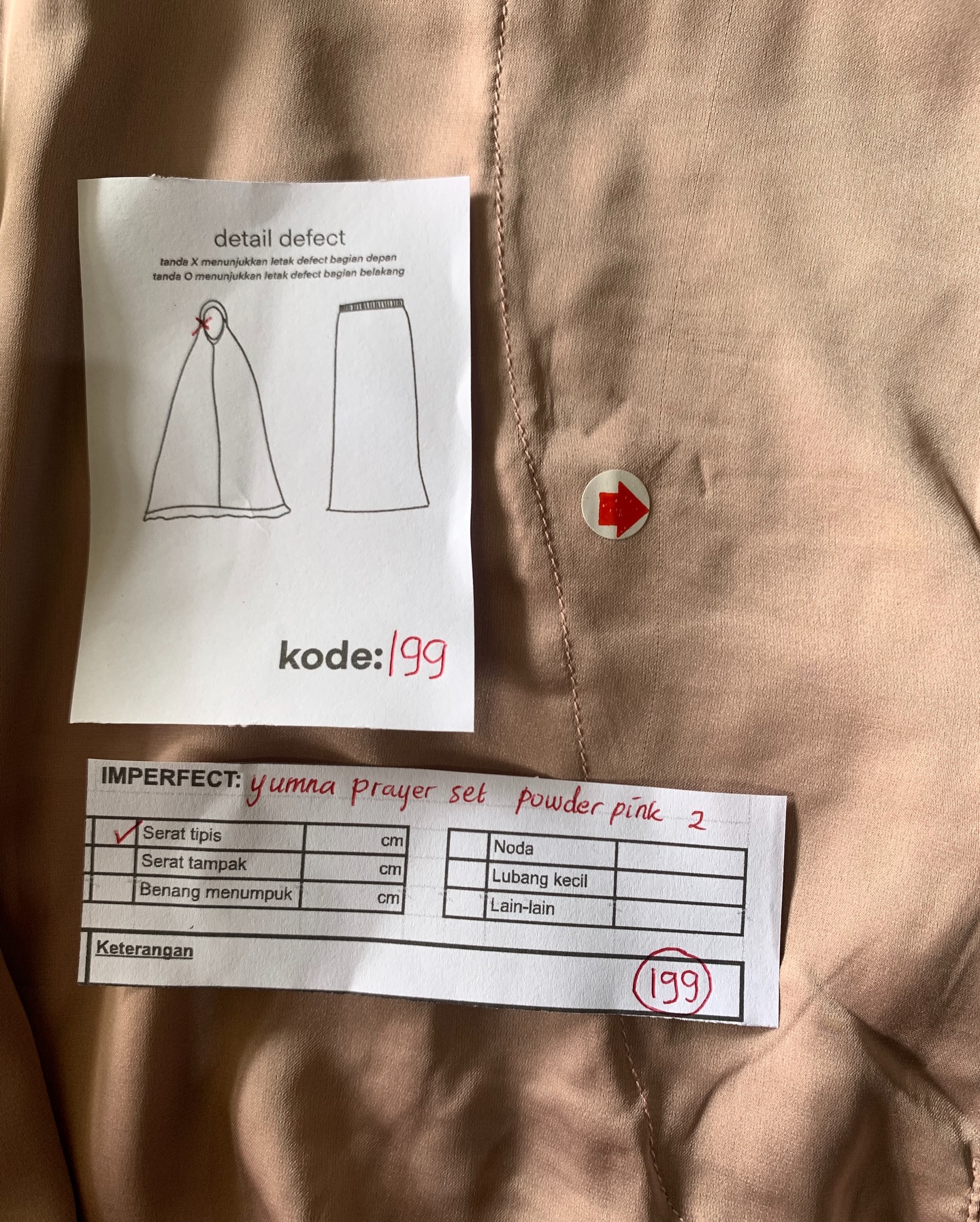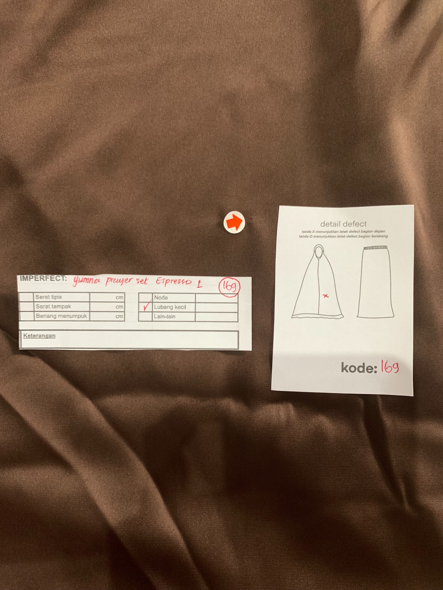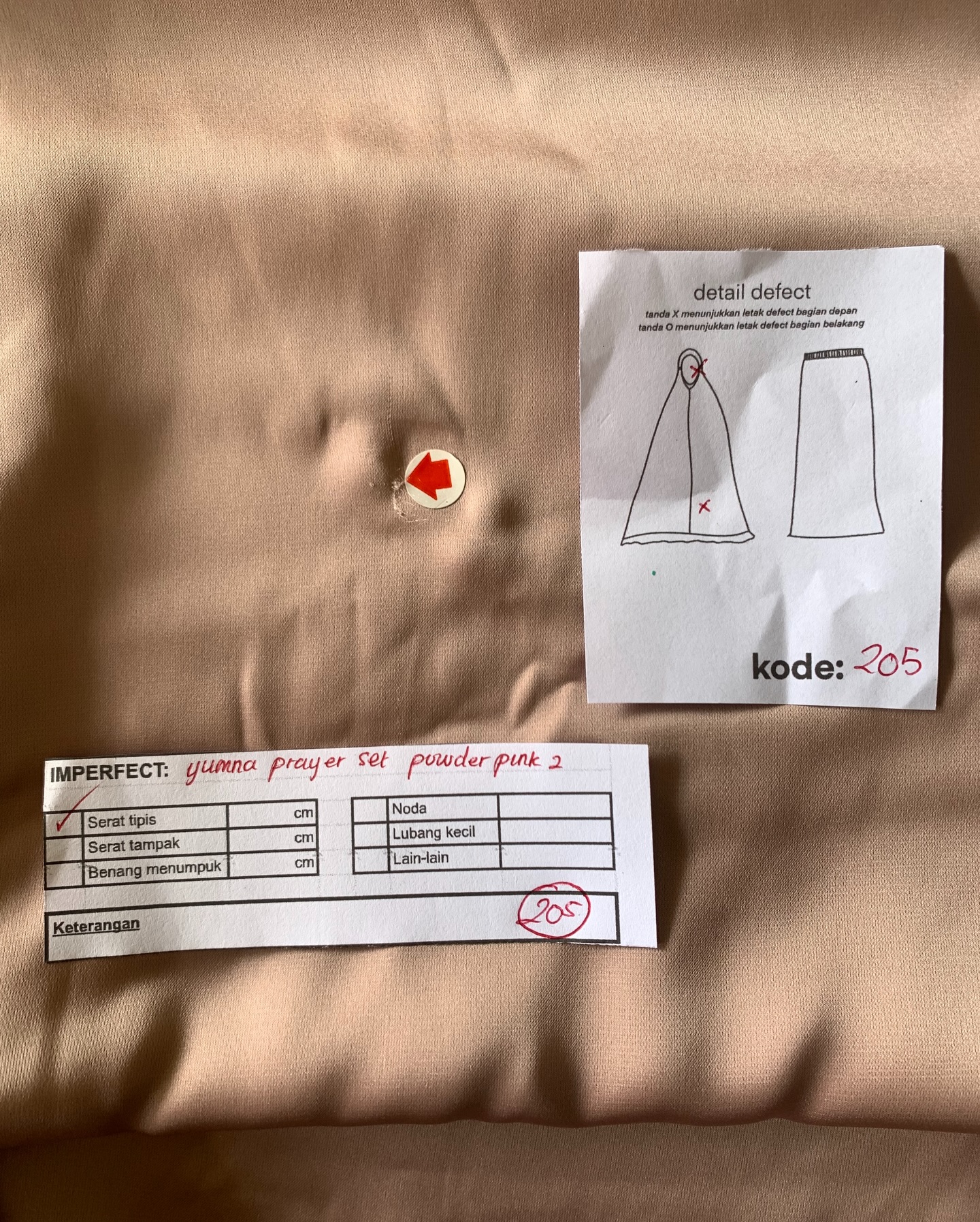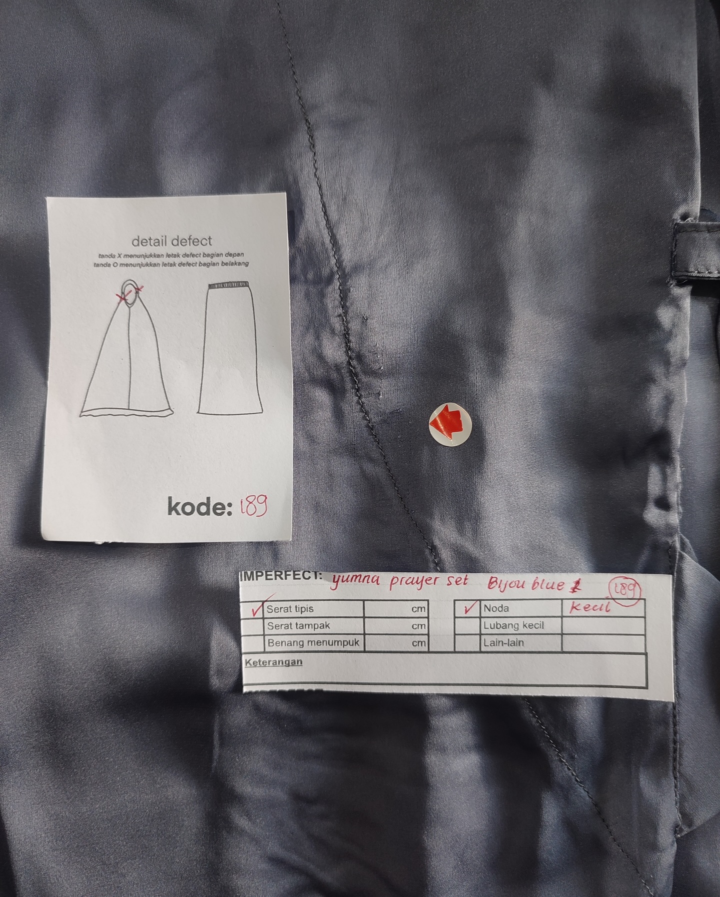 photo includes code, color, size, and defect details.