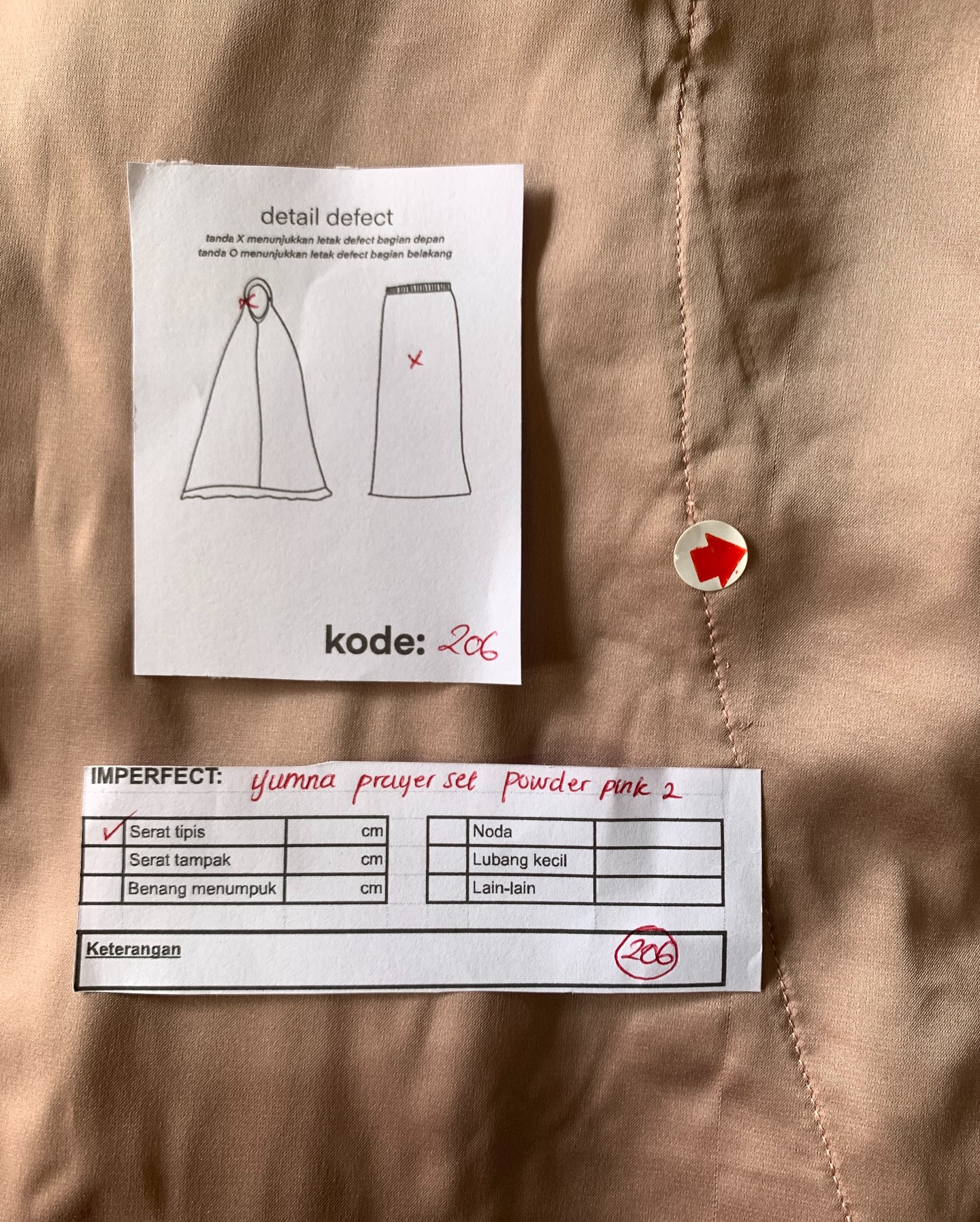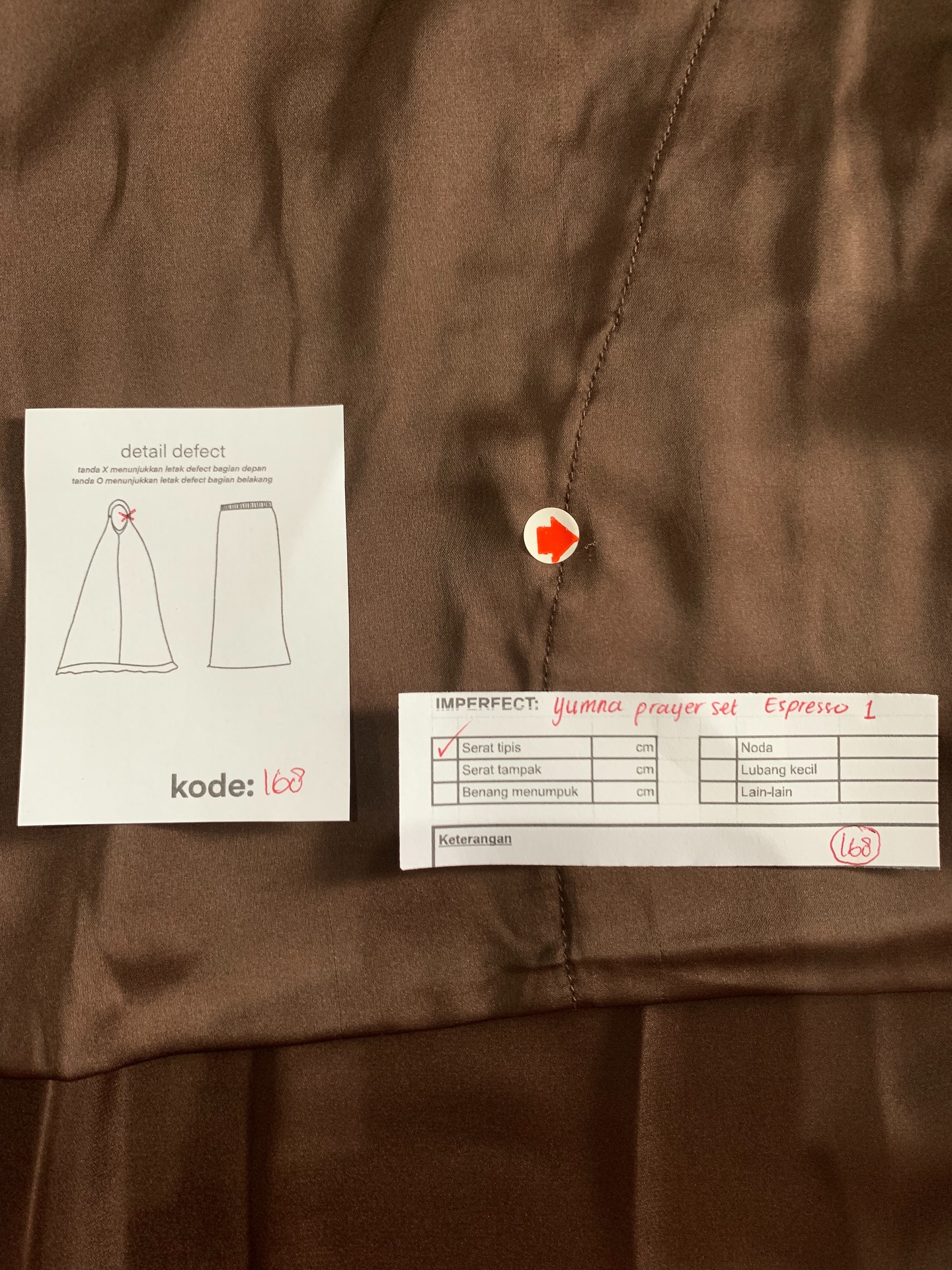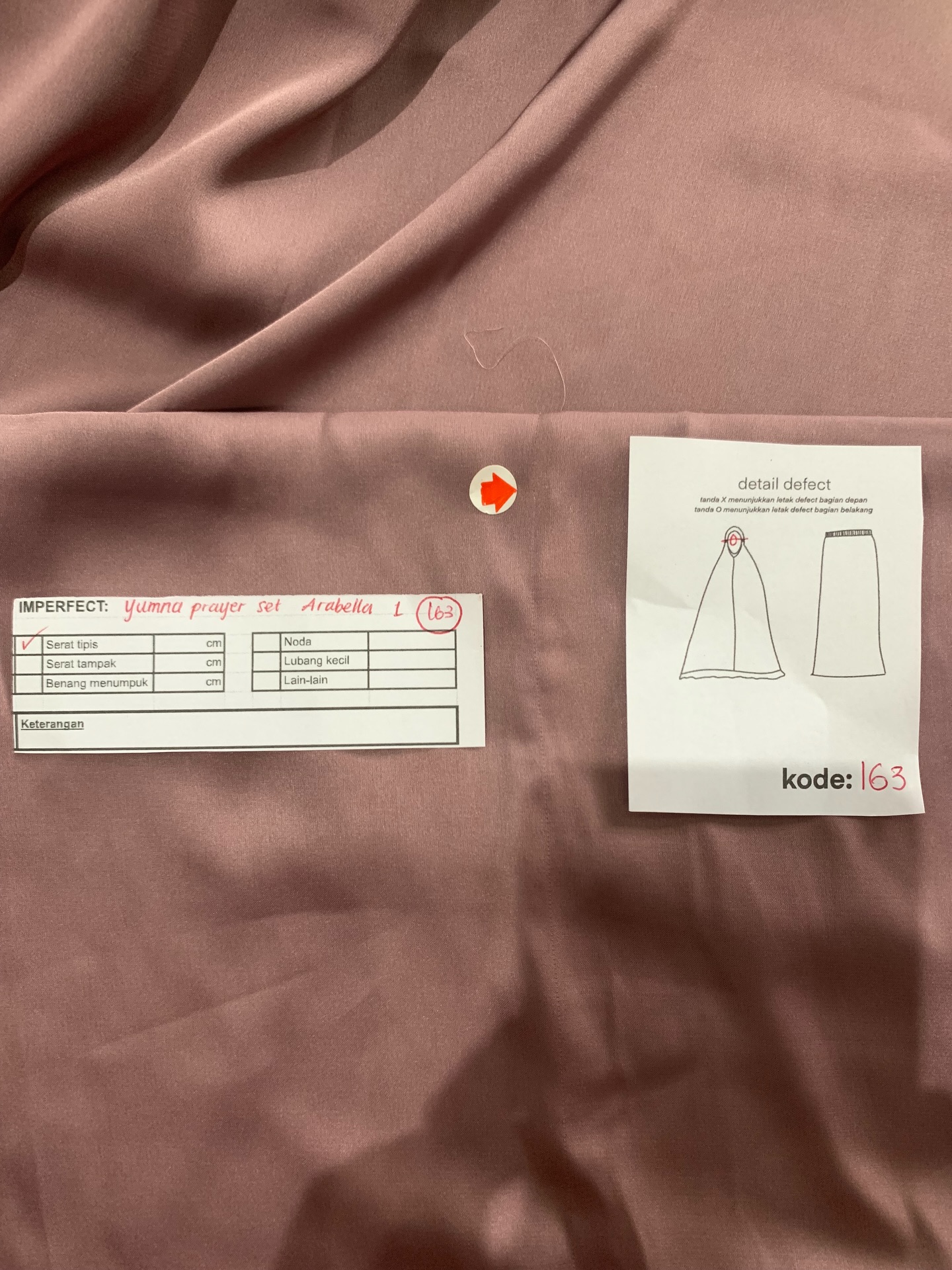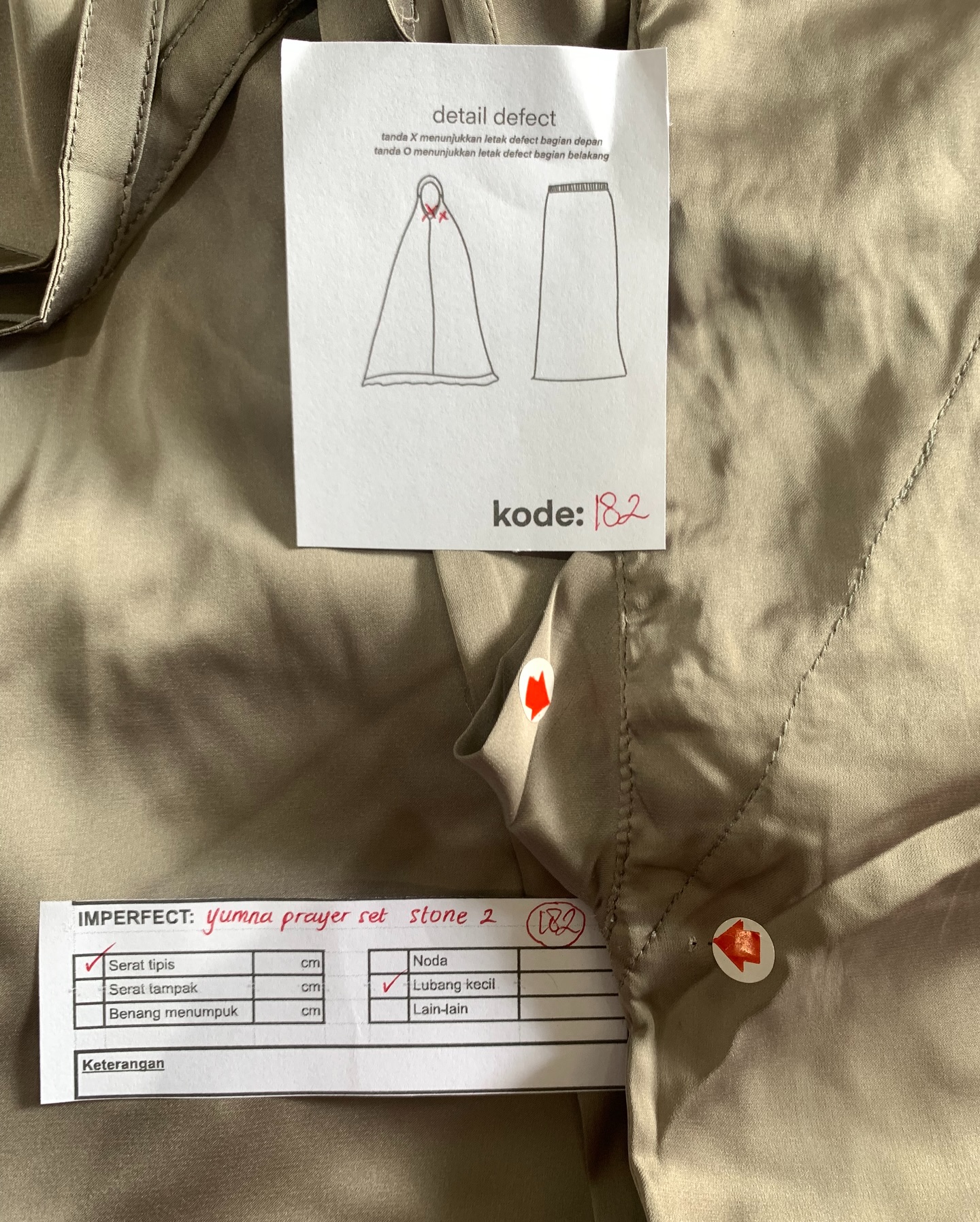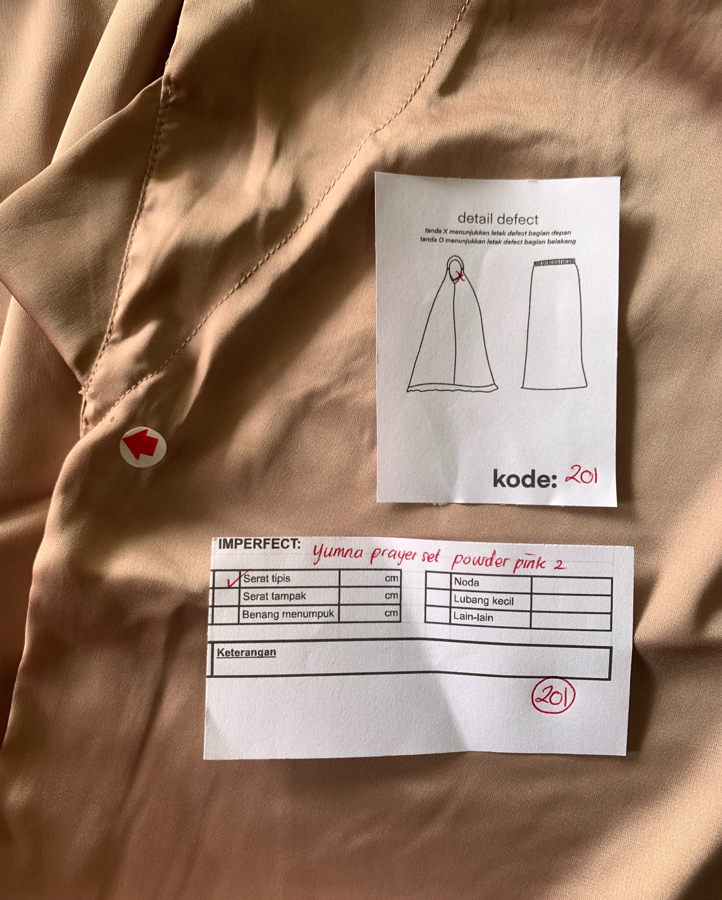 photo includes code, color, size, and defect details.