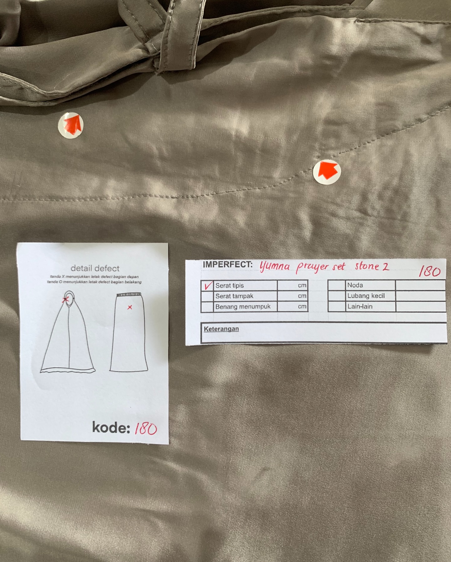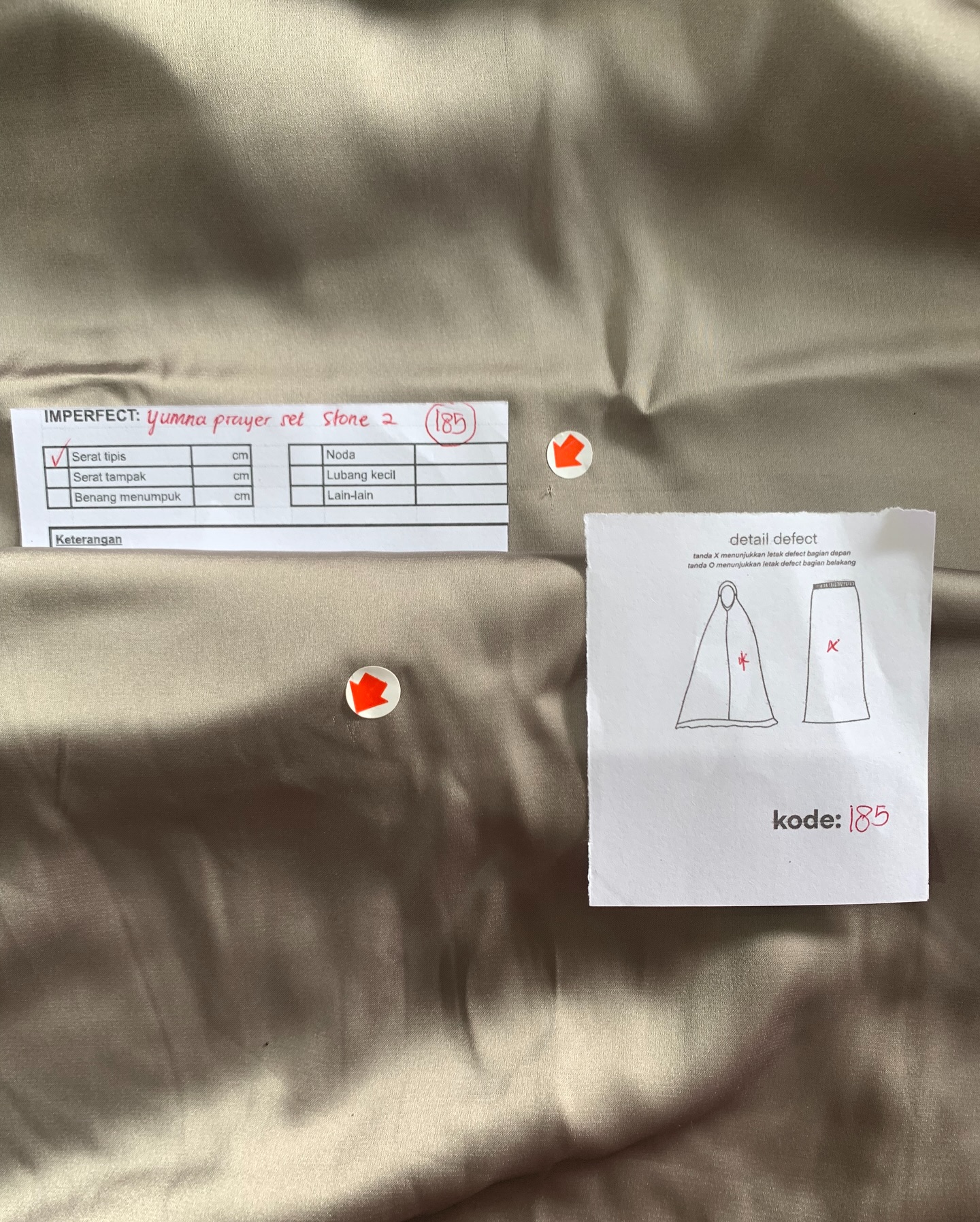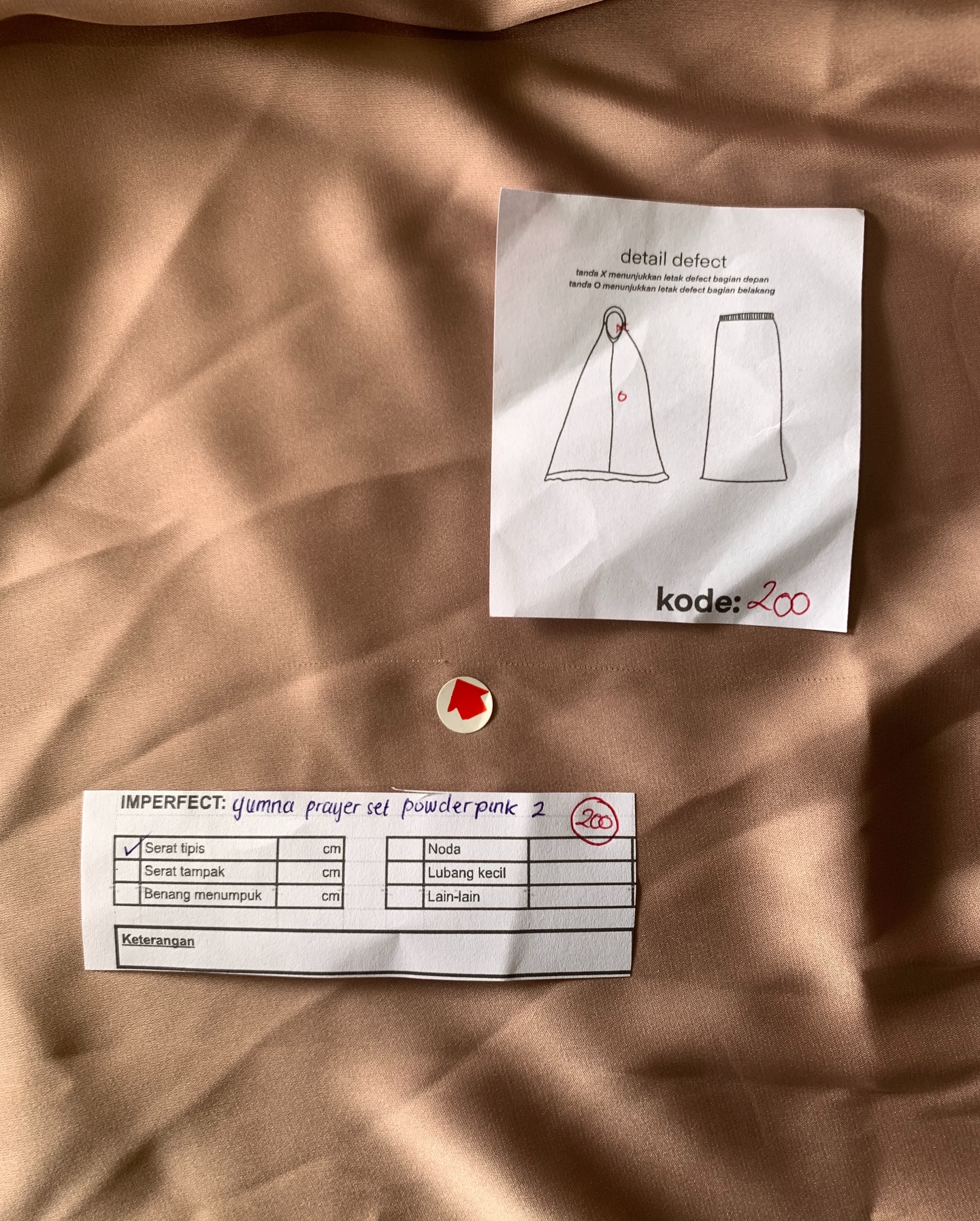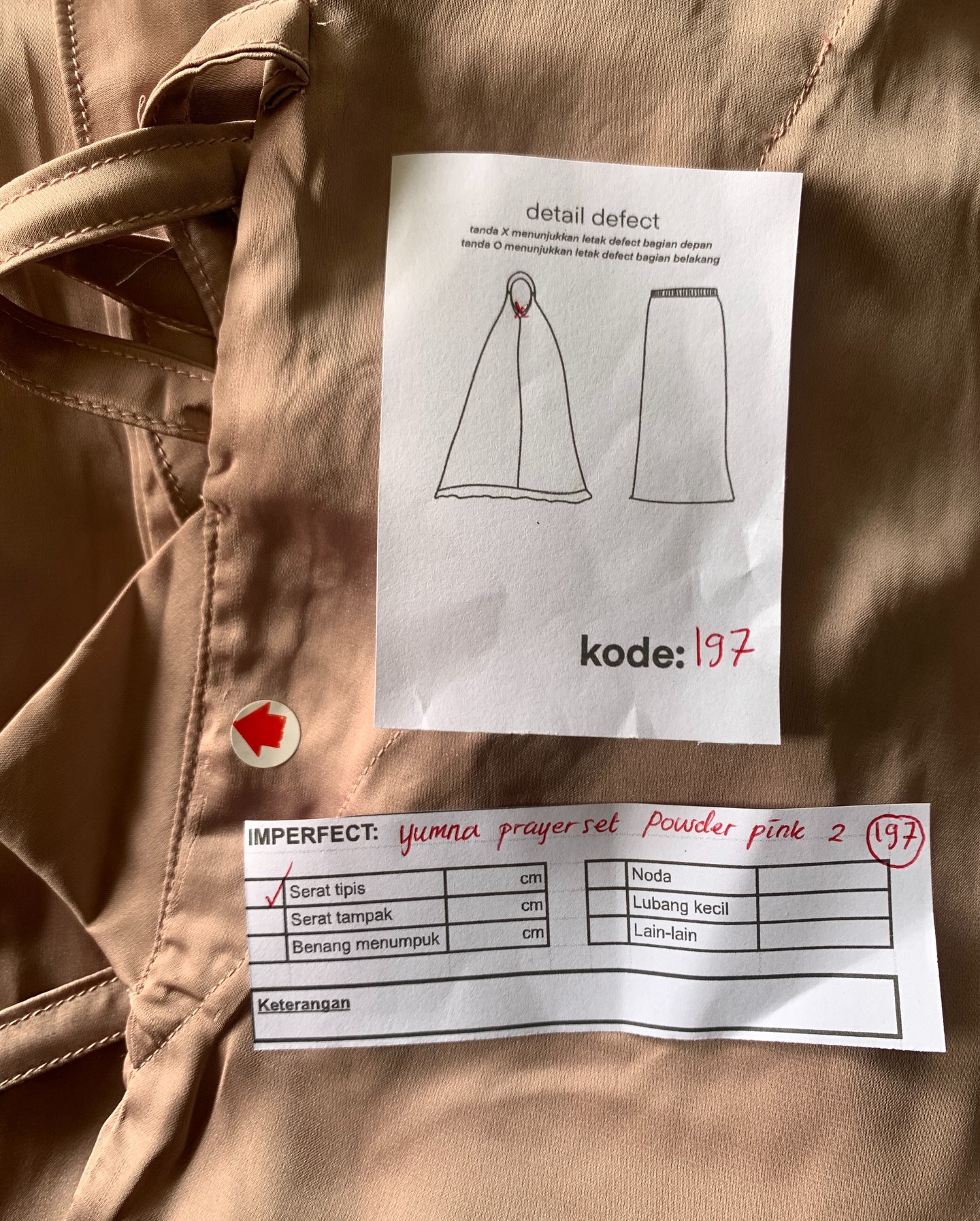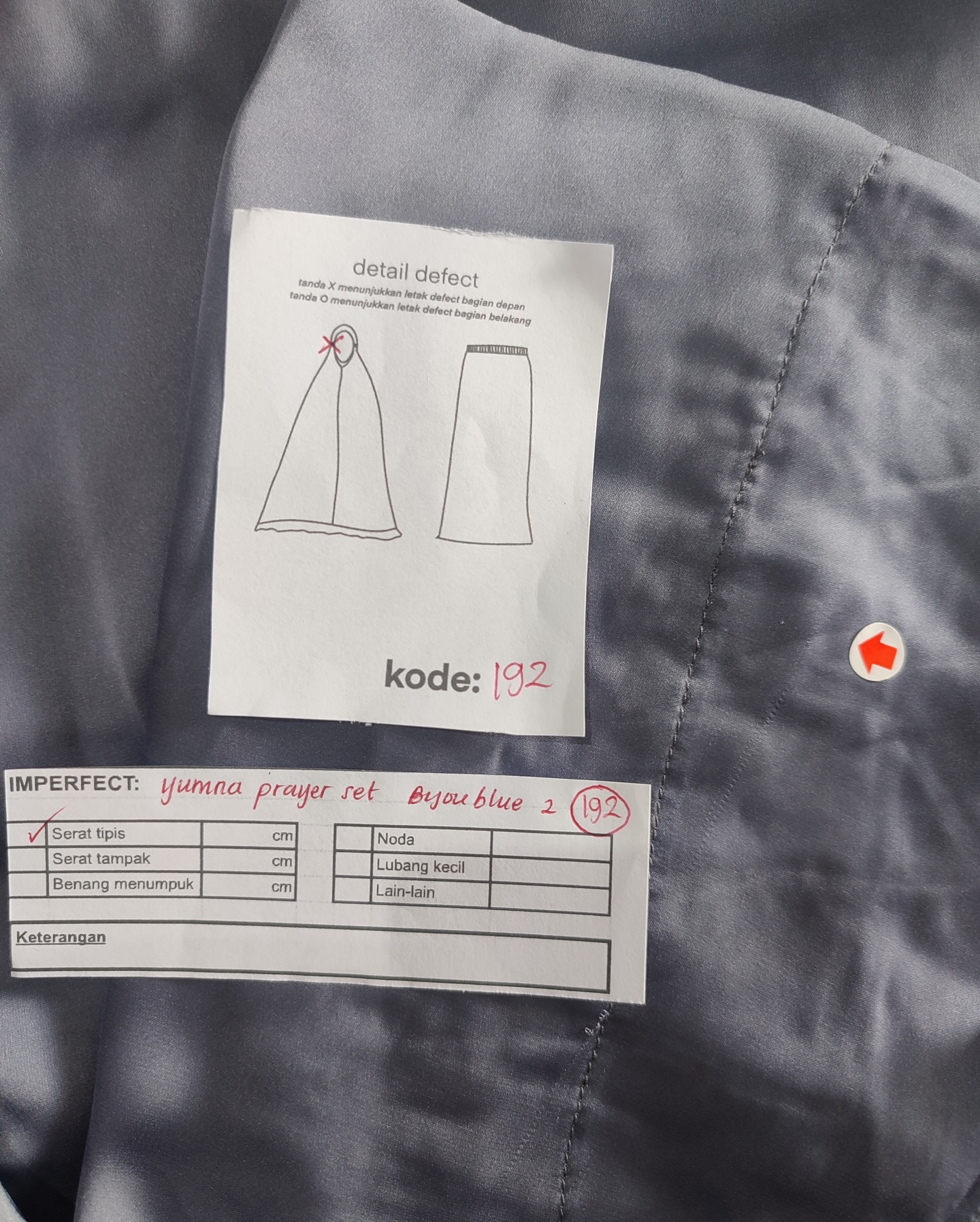 photo includes code, color, size, and defect details.