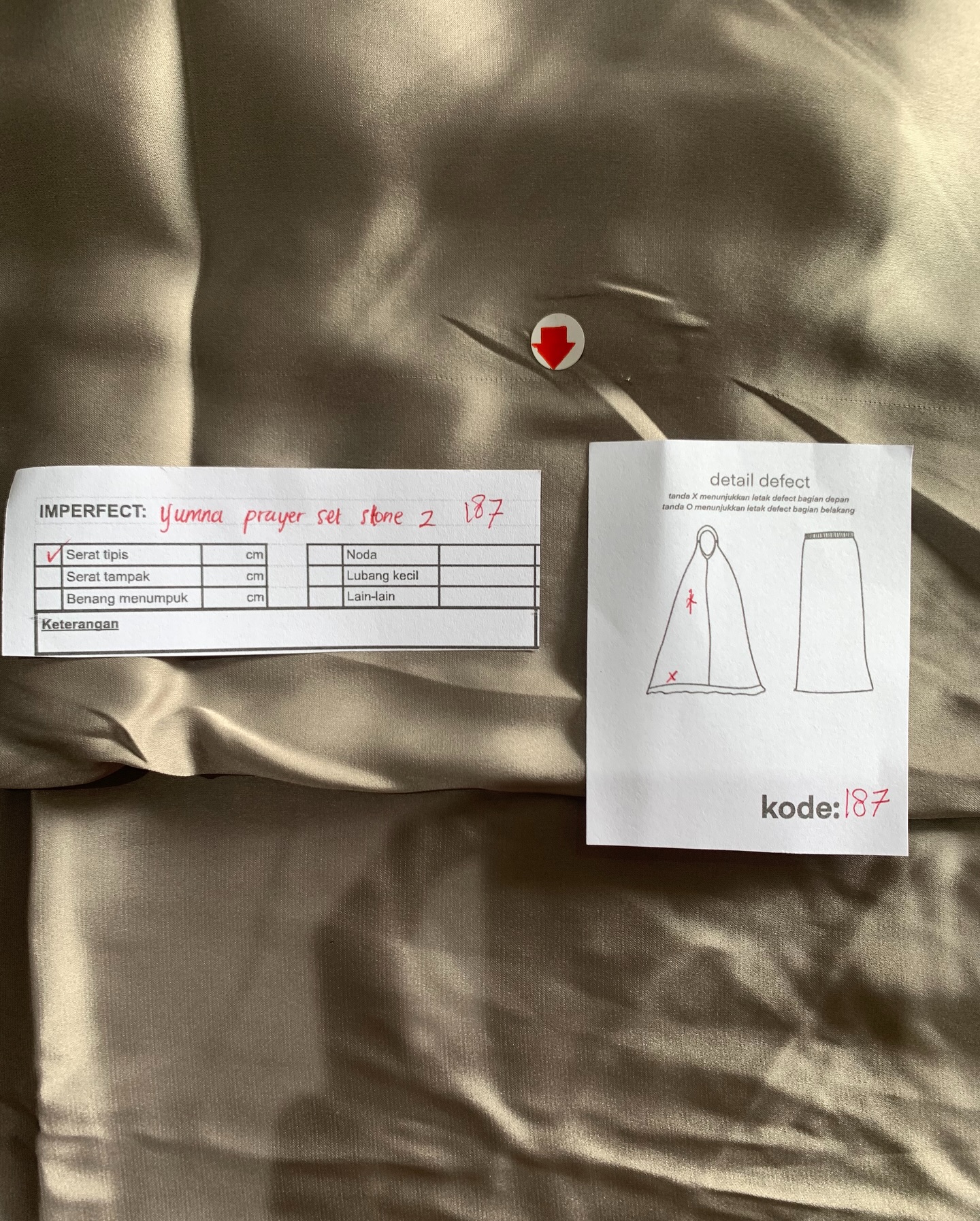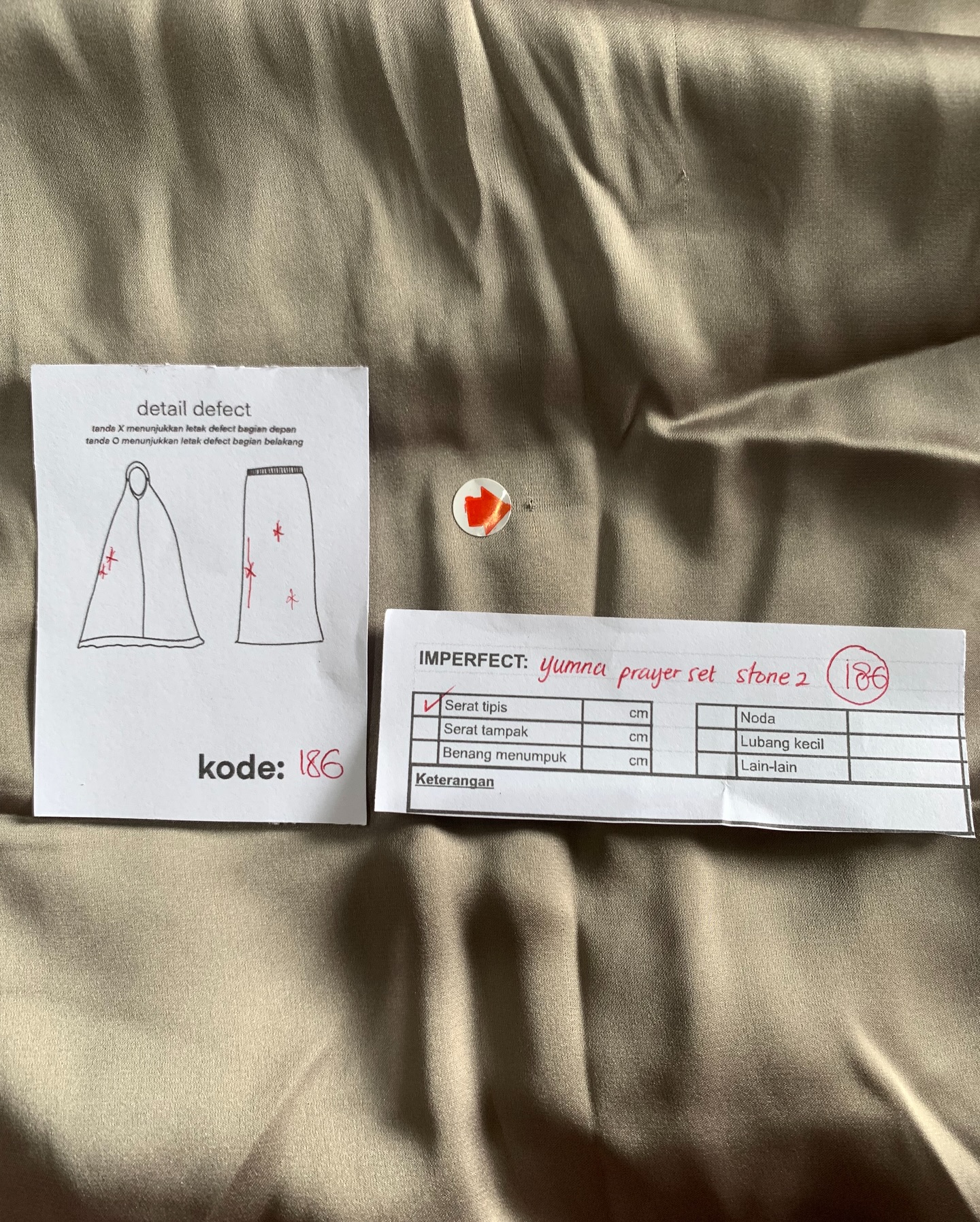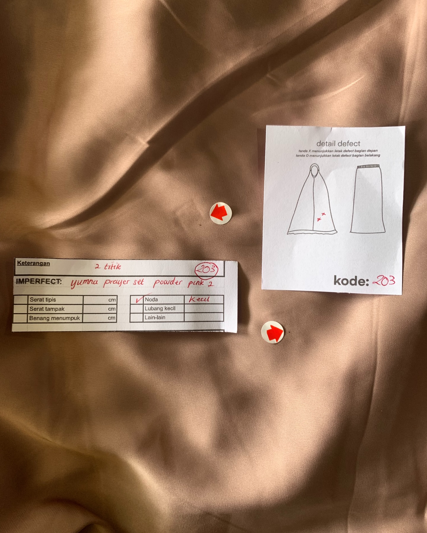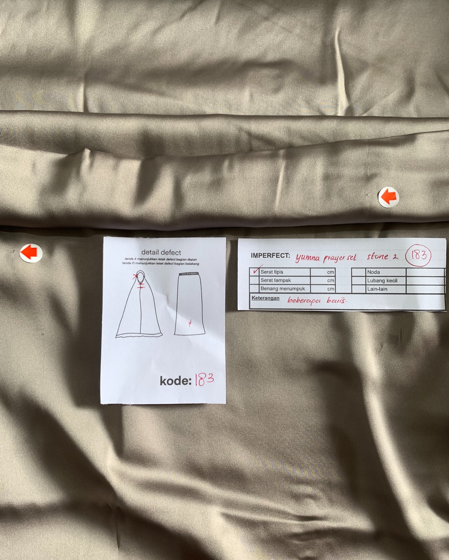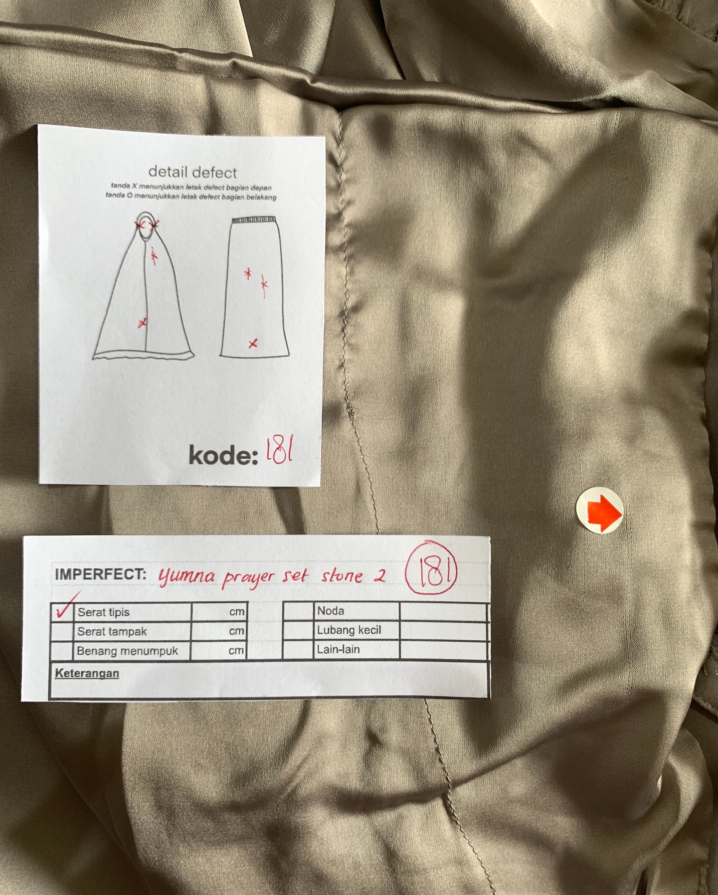 photo includes code, color, size, and defect details.