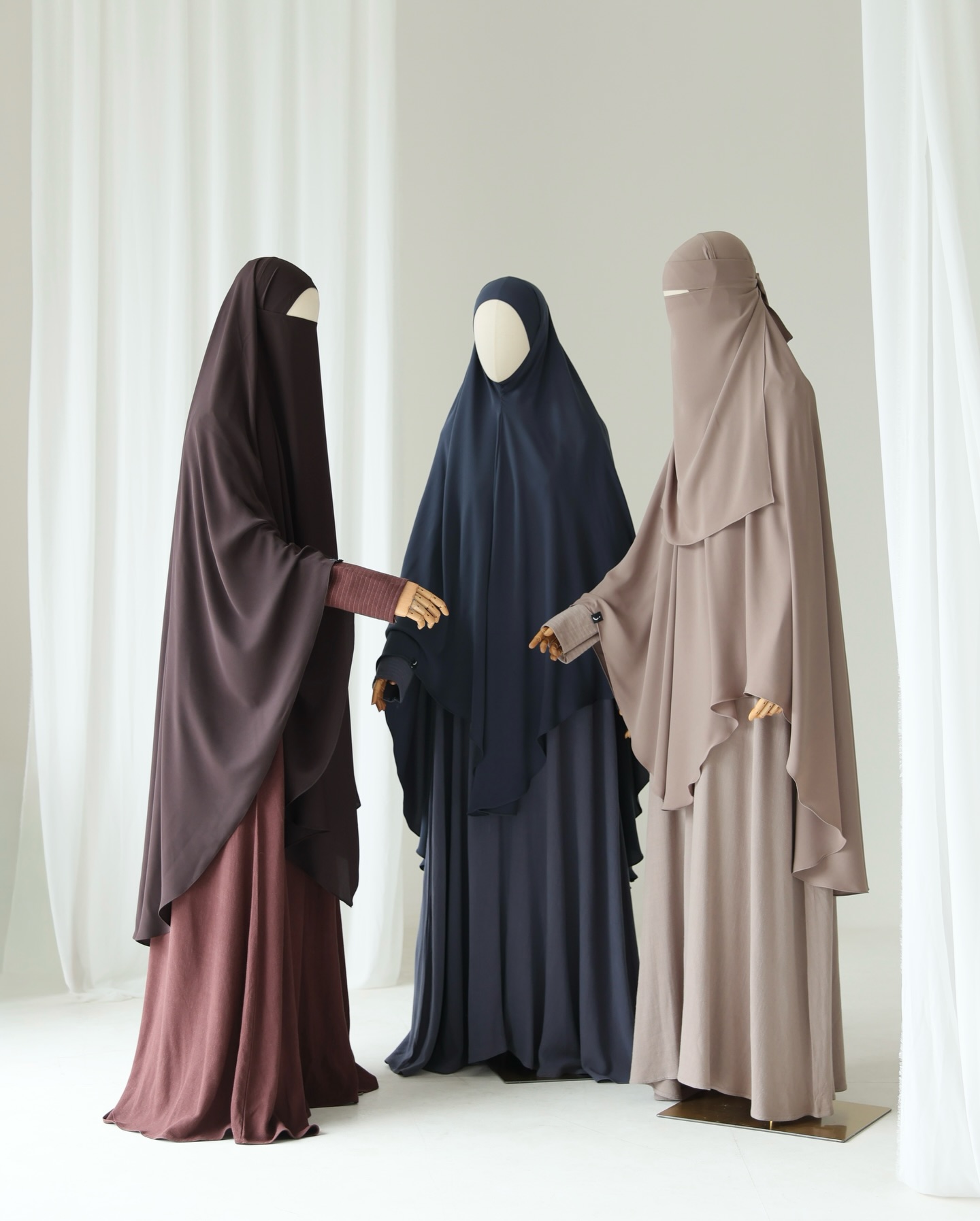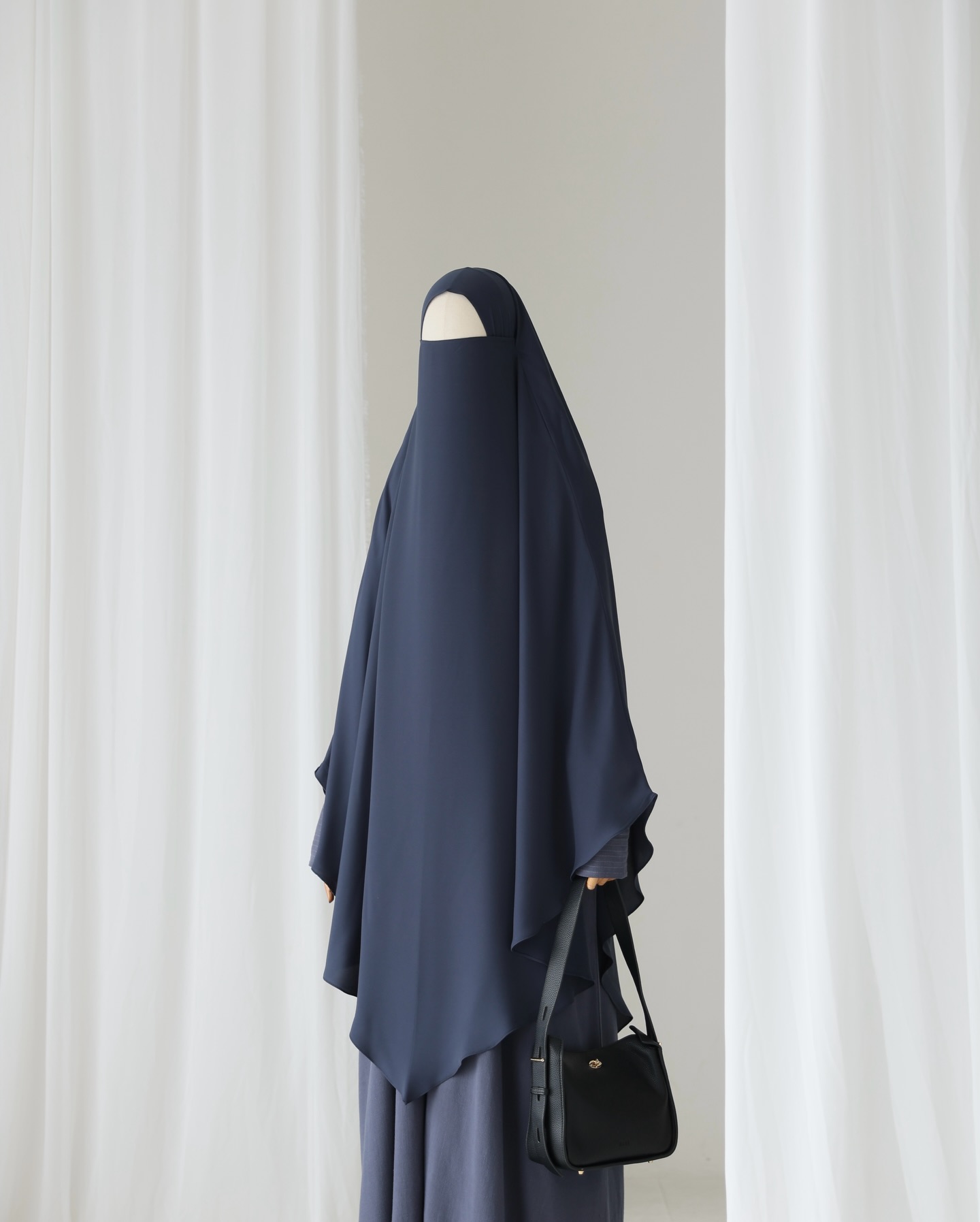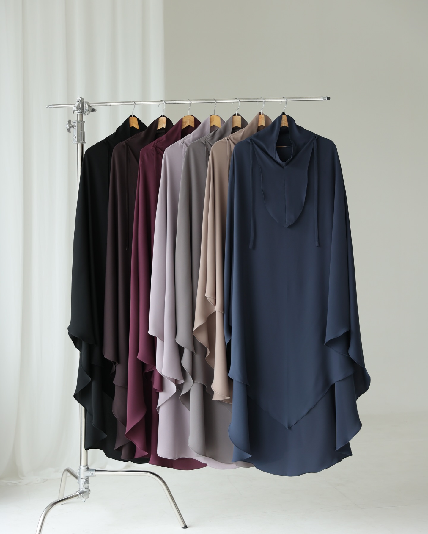 khimar bahan mada: black, denim, almond, mahogany