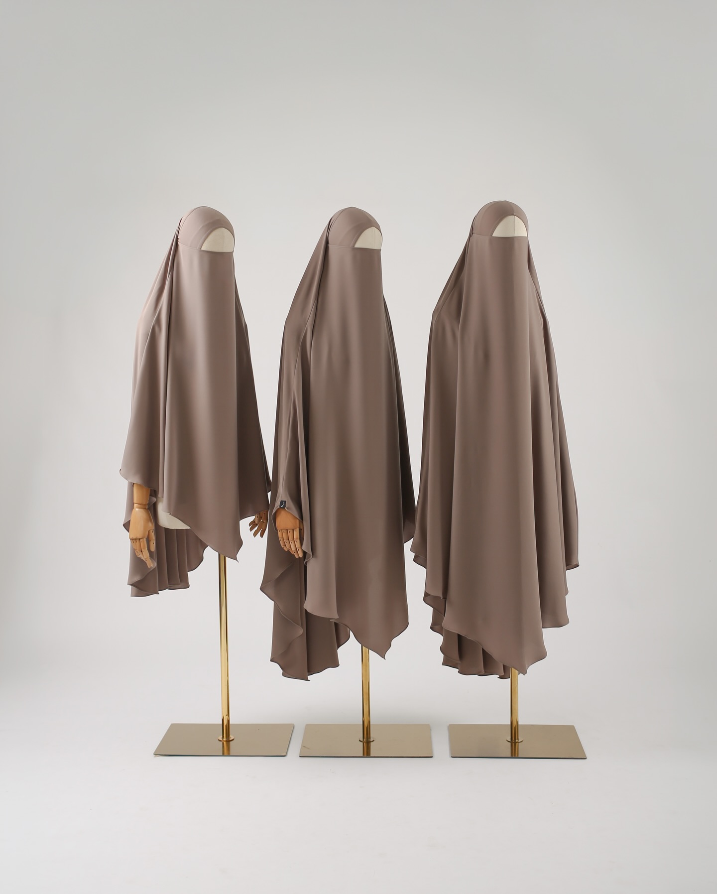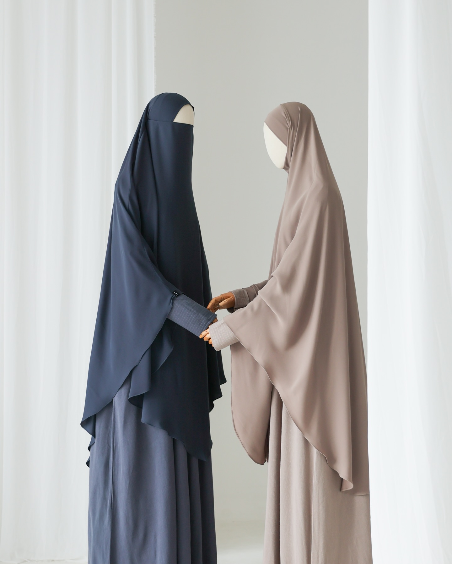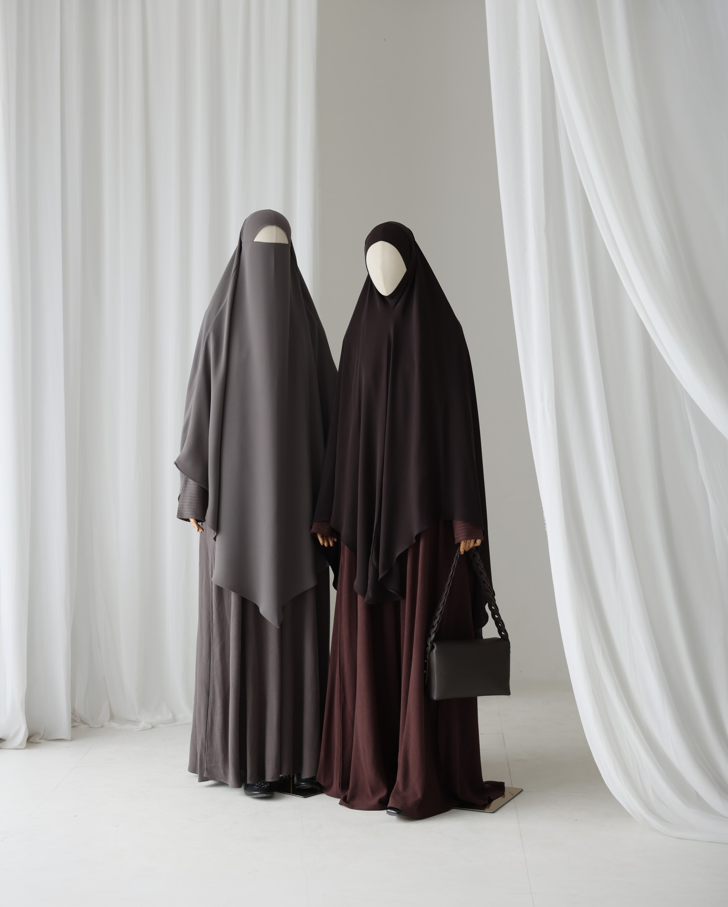 khimar bahan mada: black, denim, almond, mahogany